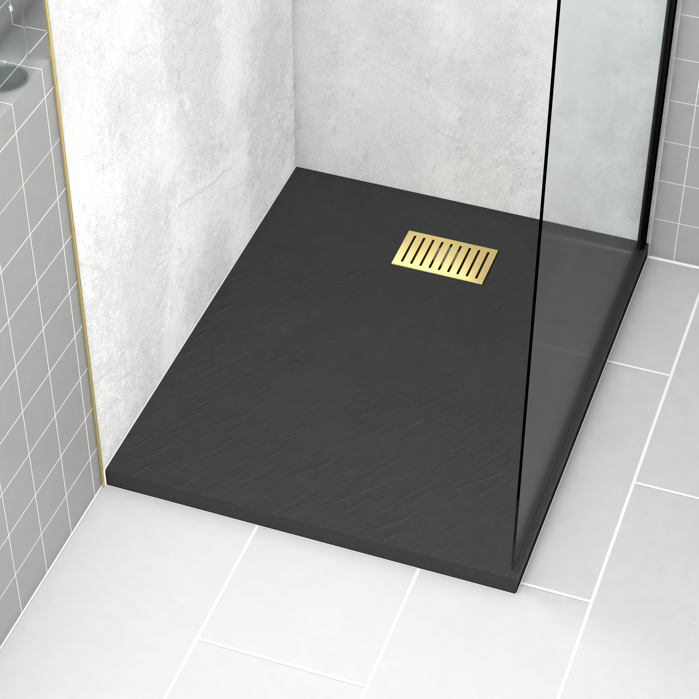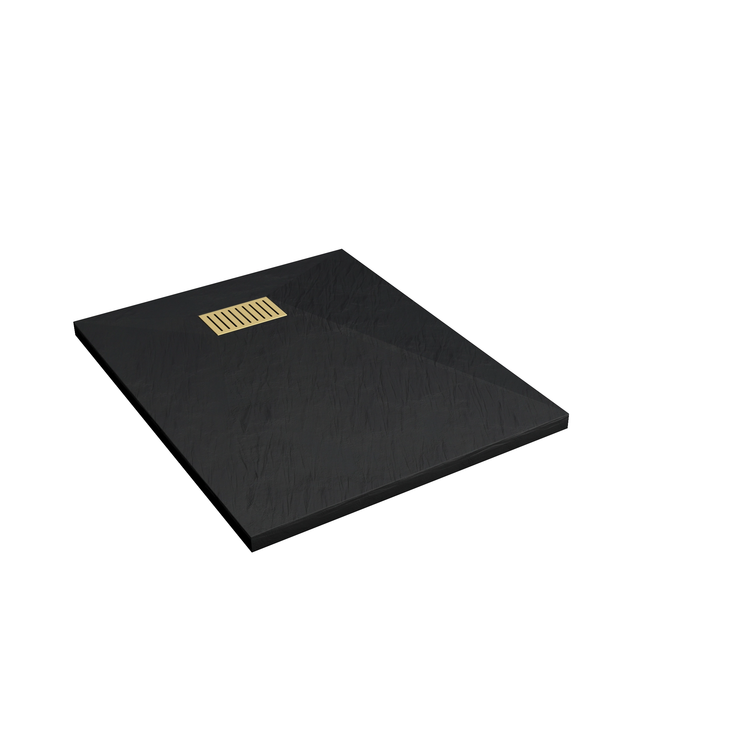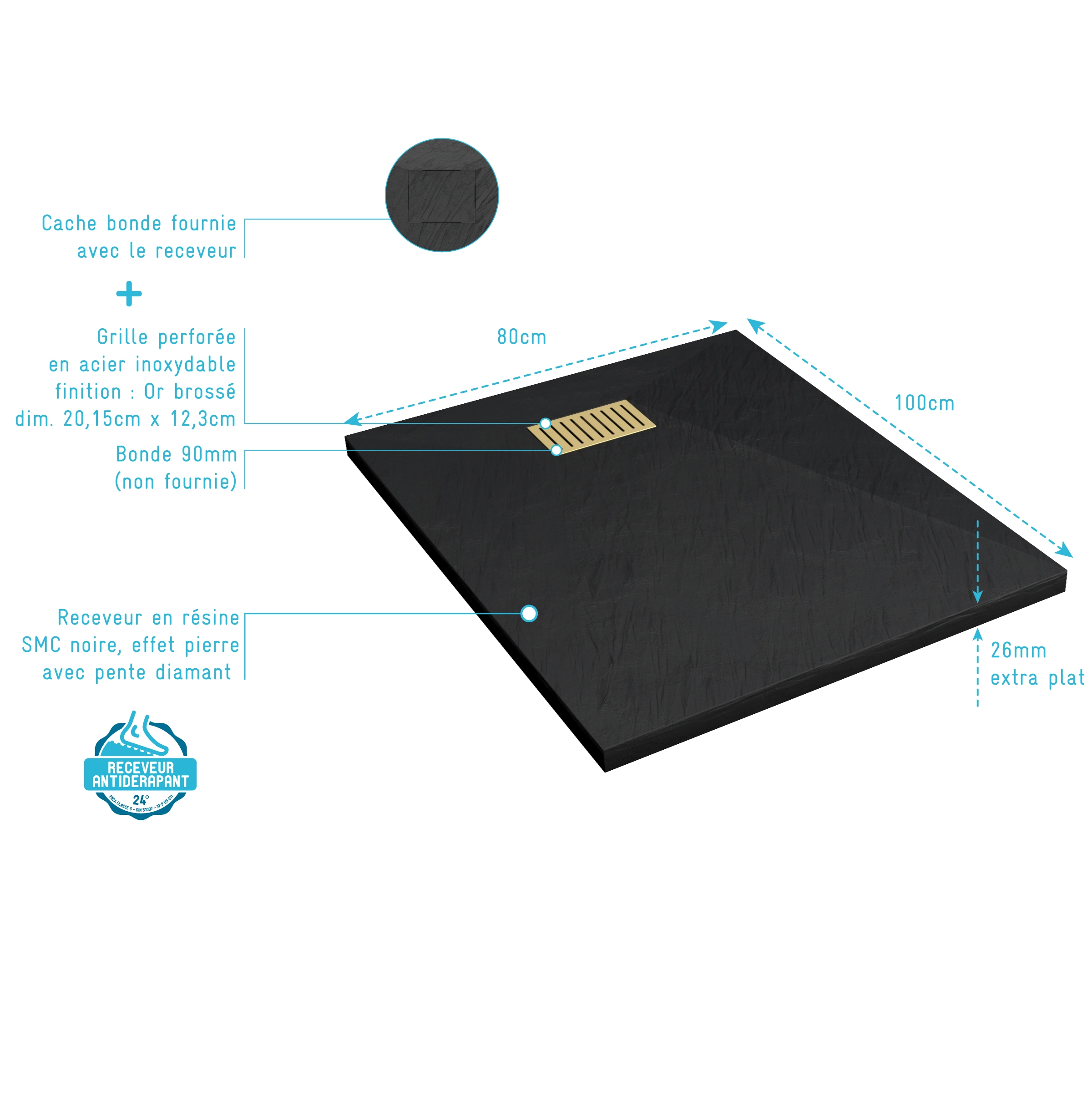 Receveur de douche Noir Effet Pierre 80×100 cm et Grille décor Linéaire Or Doré Brossé