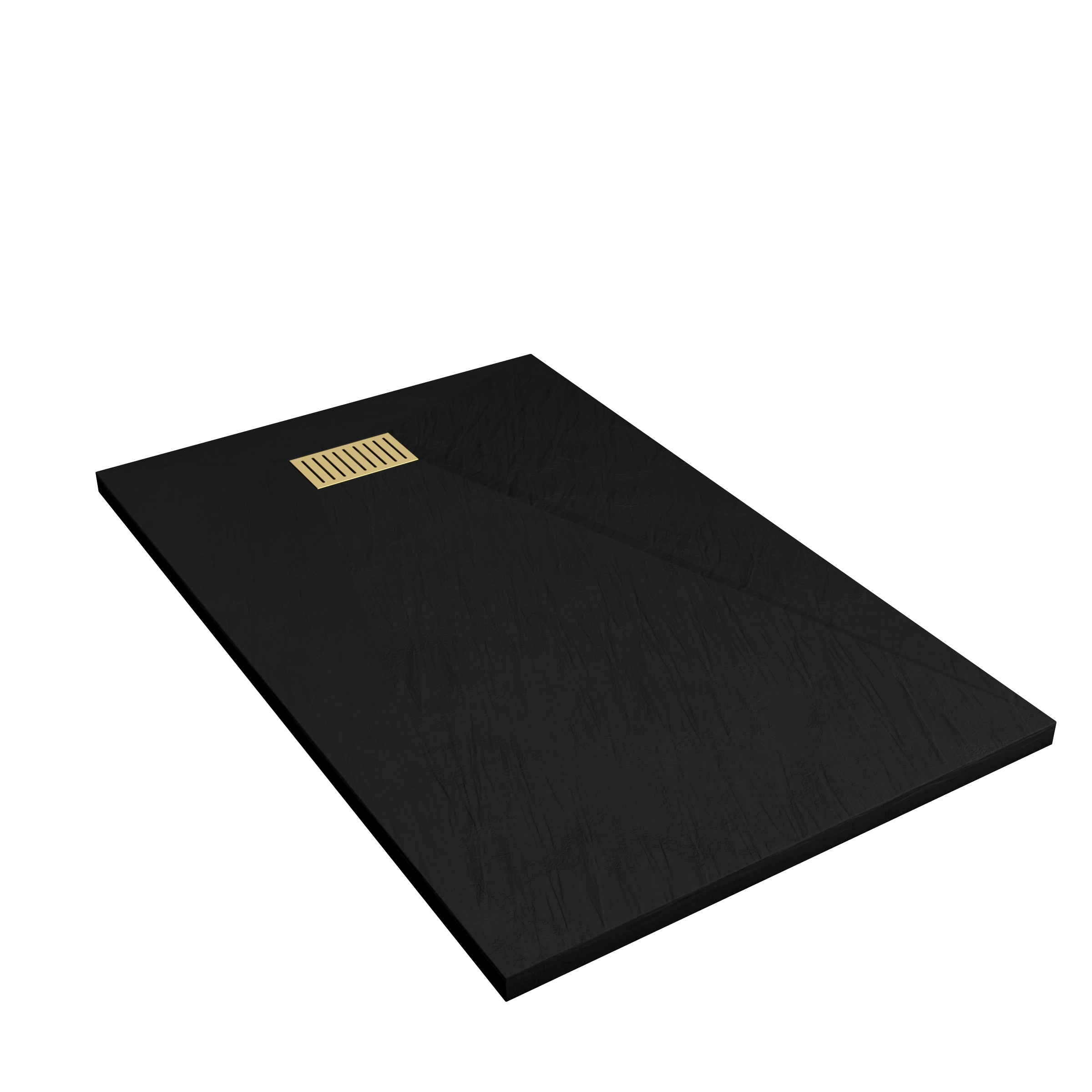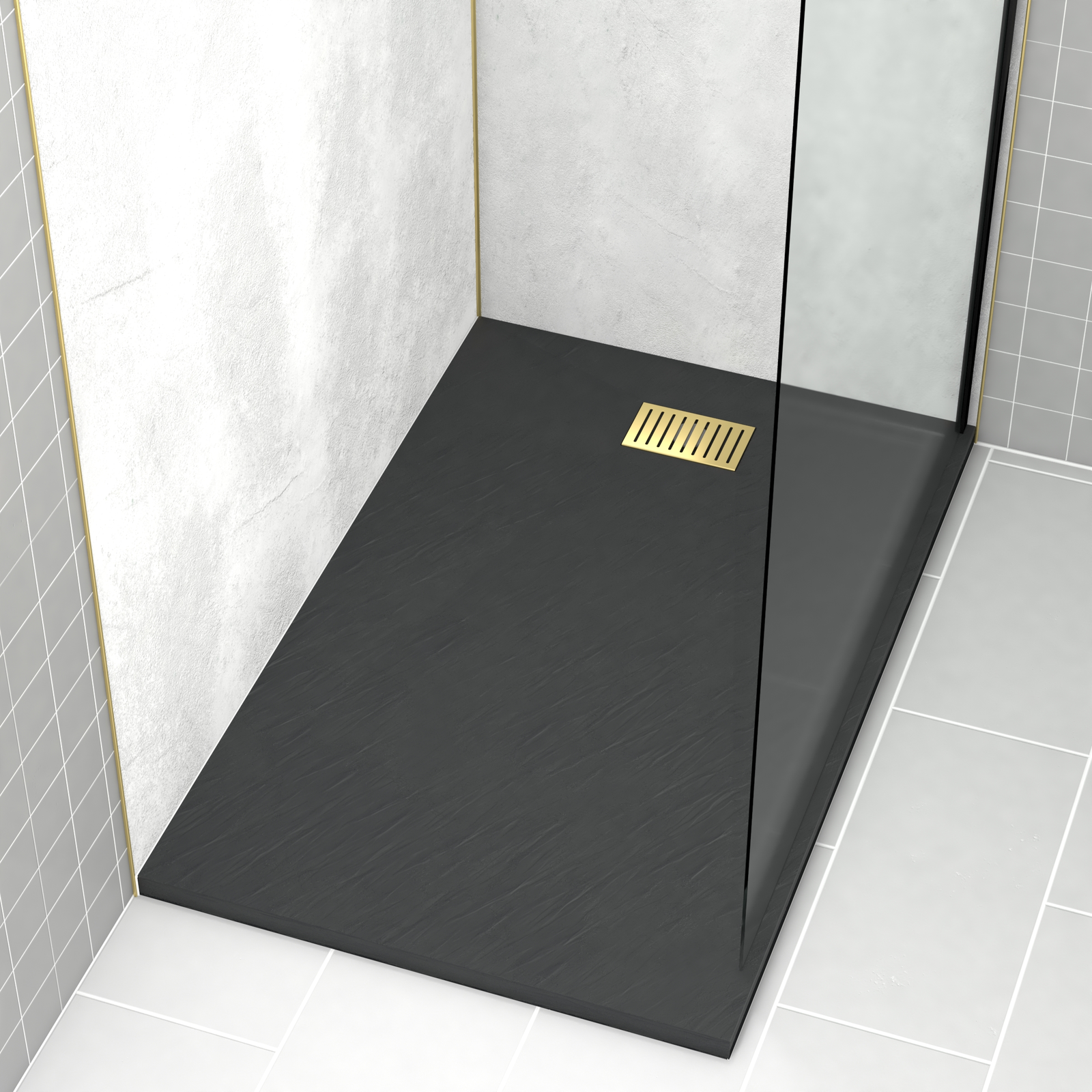 0 avis METEORA Receveur en acrylique Noir Effet Pierre 90x140x5 cm + Grilles Linéaires Chrome et Or Brossé