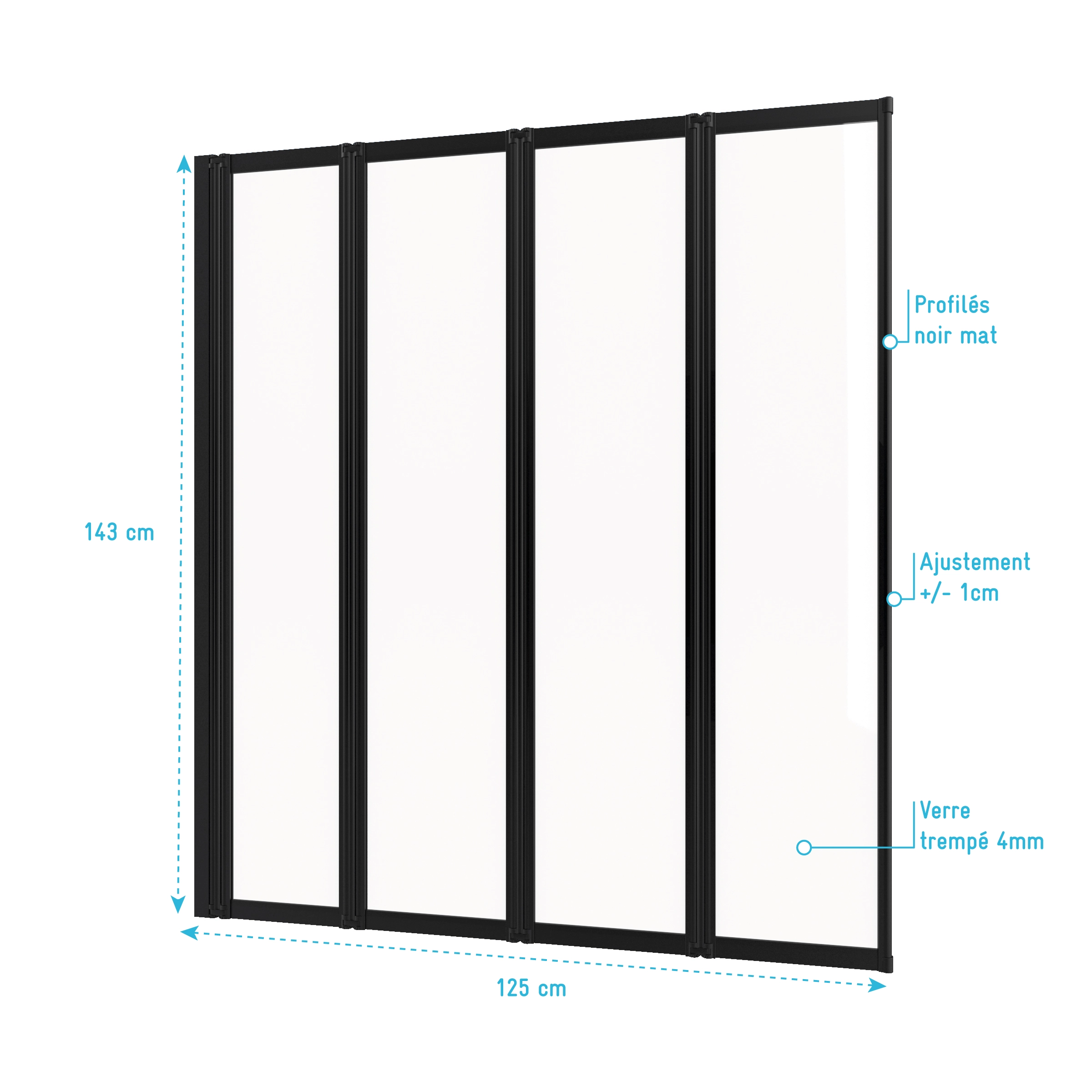Pare baignoire 4 volets pivotants - profiles noir mat - verre transparent 4mm - TETRA BLACK