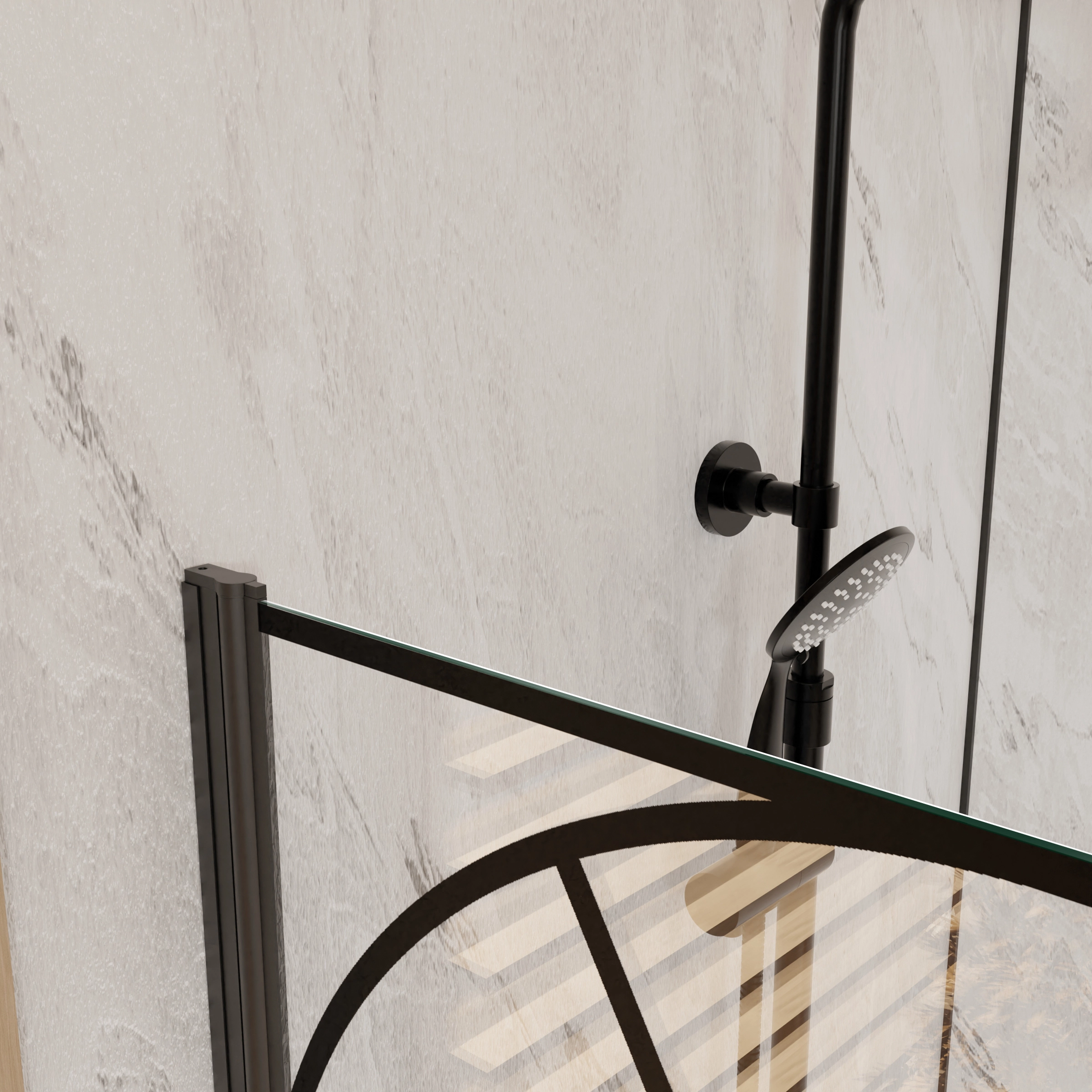 Pare Baignoire Déco 75×130 cm – Verre Trempé 4 mm Sérigraphie Verrière – Profilé Noir Mat