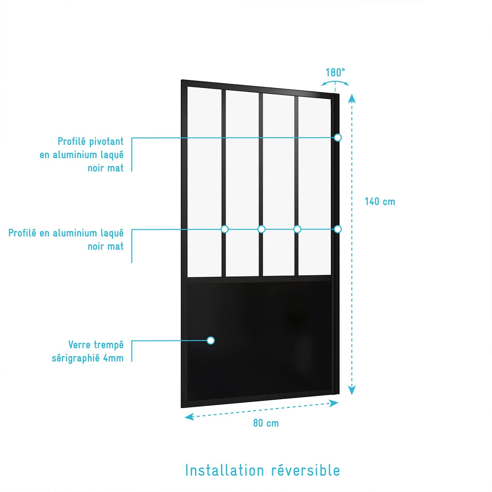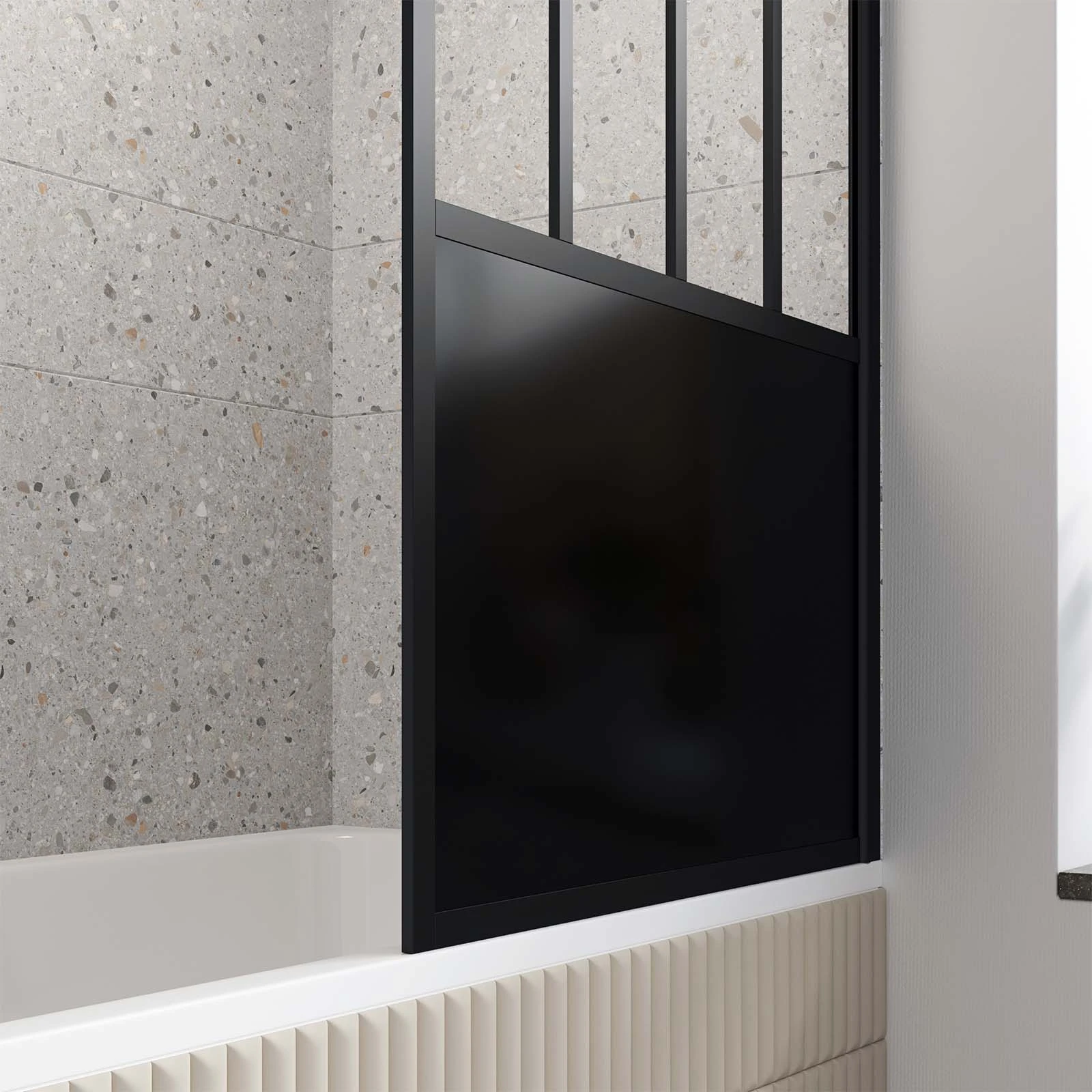 3 avis pour Pare Baignoire Pivotant 130x75cm Type Industriel – Profilé Noir Mat – Verre Trempé – GLASSY SCREEN