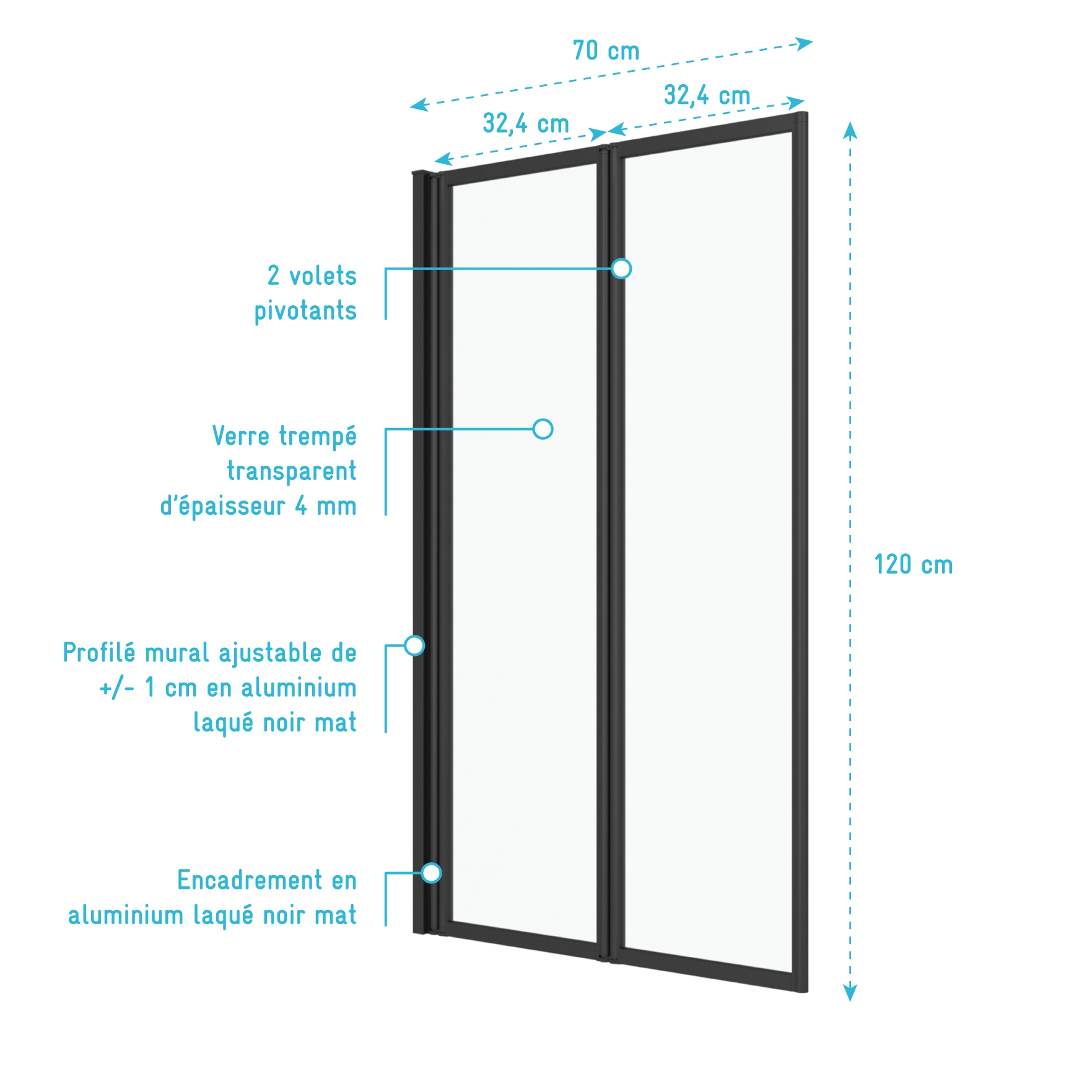 Idéal pour les petits espaces, le pare baignoire DUPLO se compose de 2 volets pivotants.