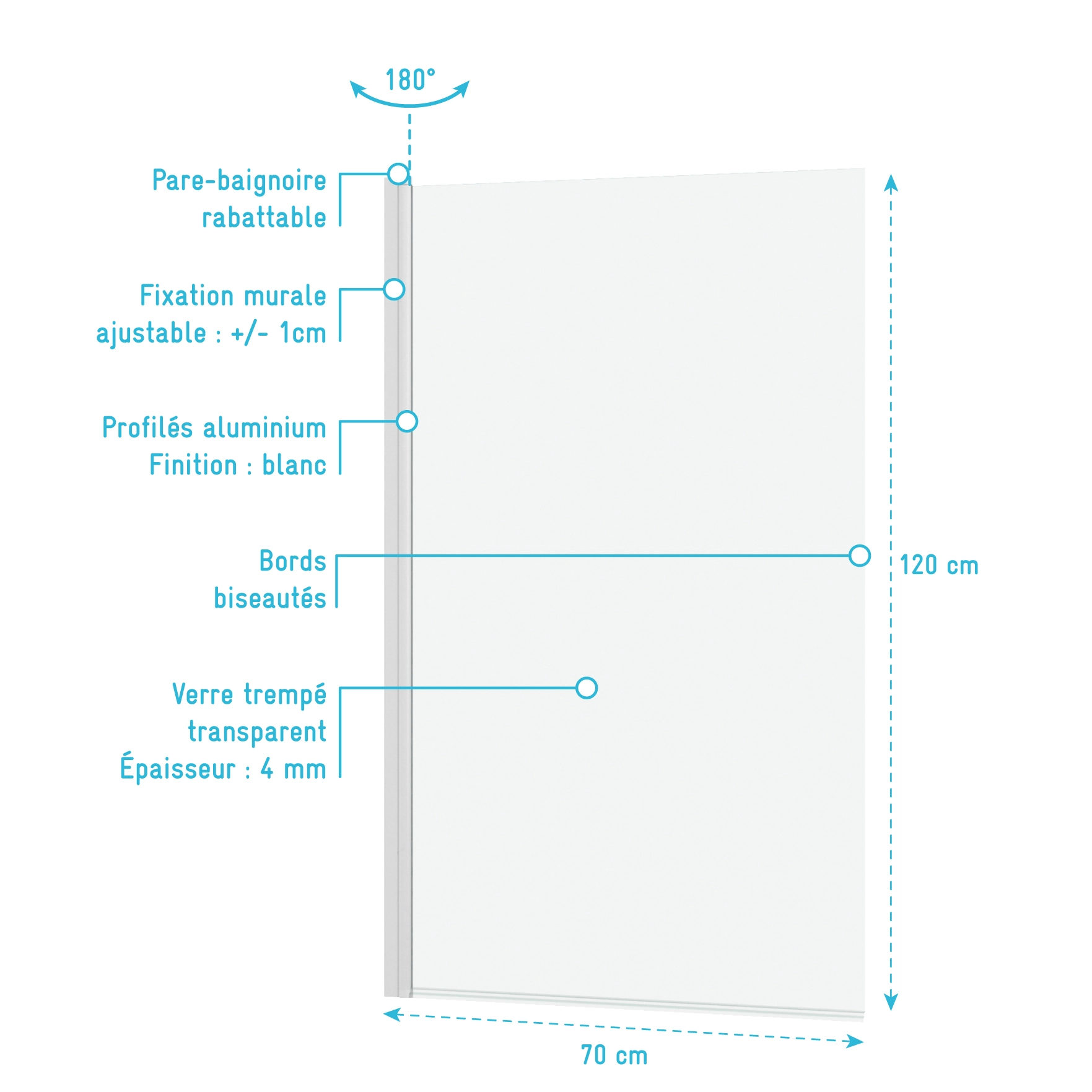 - Pare baignoire rabattable à 180°