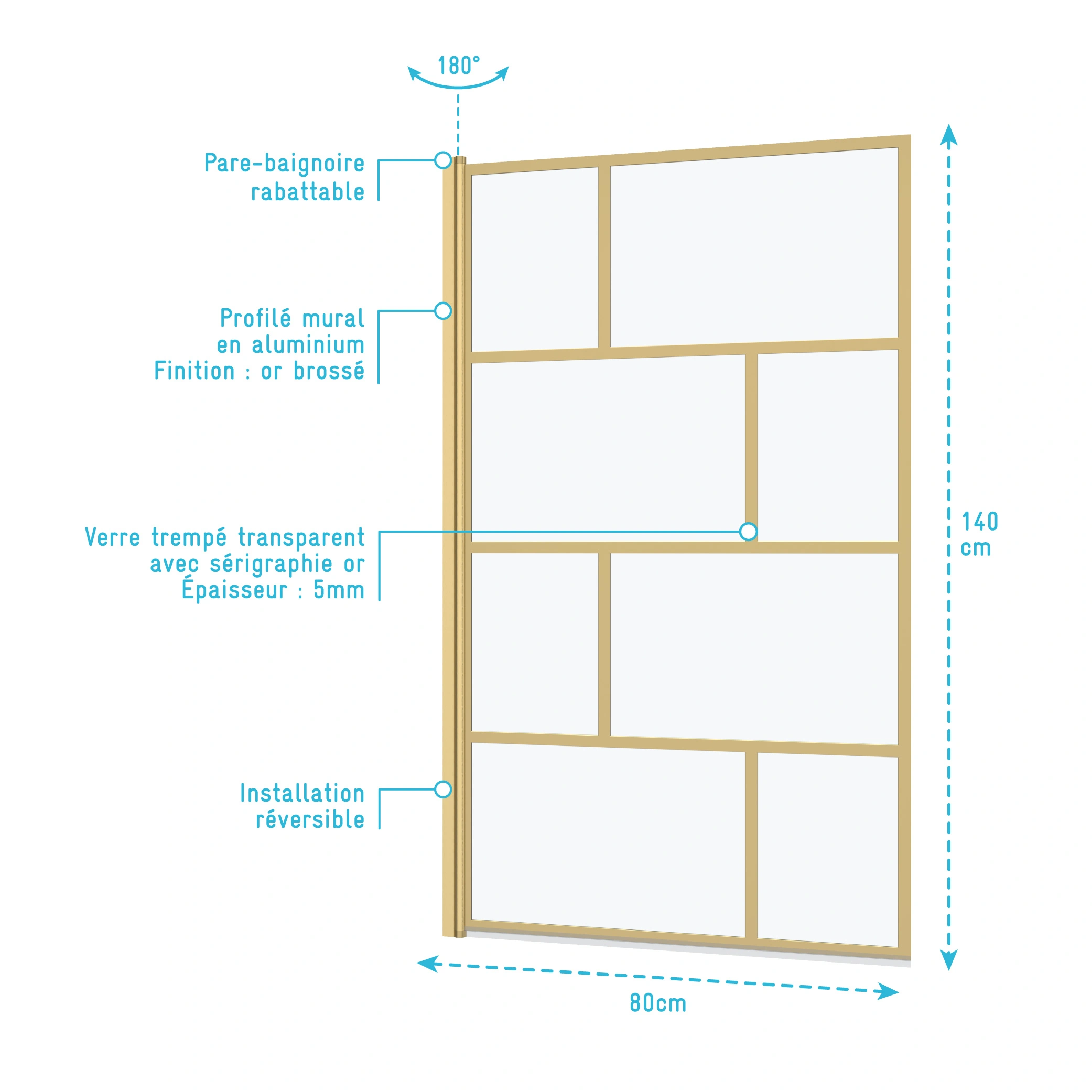 1 avis pour Pare baignoire rabattable 80x140cm Sérigraphie type Briques – Or Doré Brossé – GOLDY BLOCKS