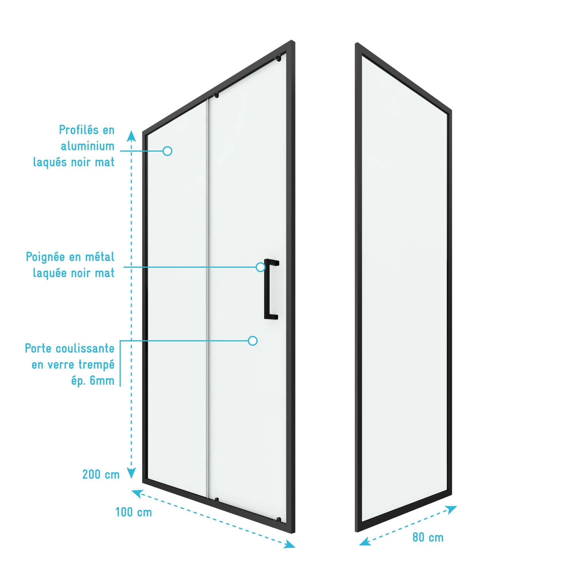 16 avis pour Paroi de douche 1 porte coulissante + Retour 100x80x200 cm – Verre 6 mm – Profilé Noir – CRUSH