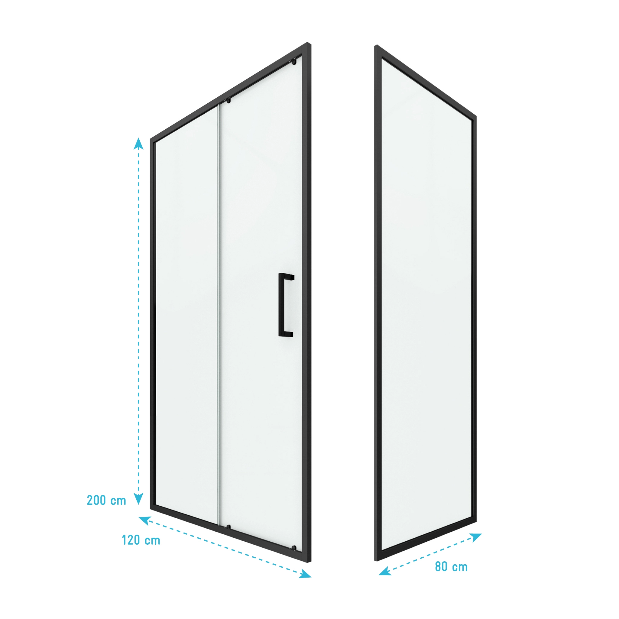 Porte de douche + Retour 120x80x200 cm - Verre 6 mm - Profilé Noir - CRUSH