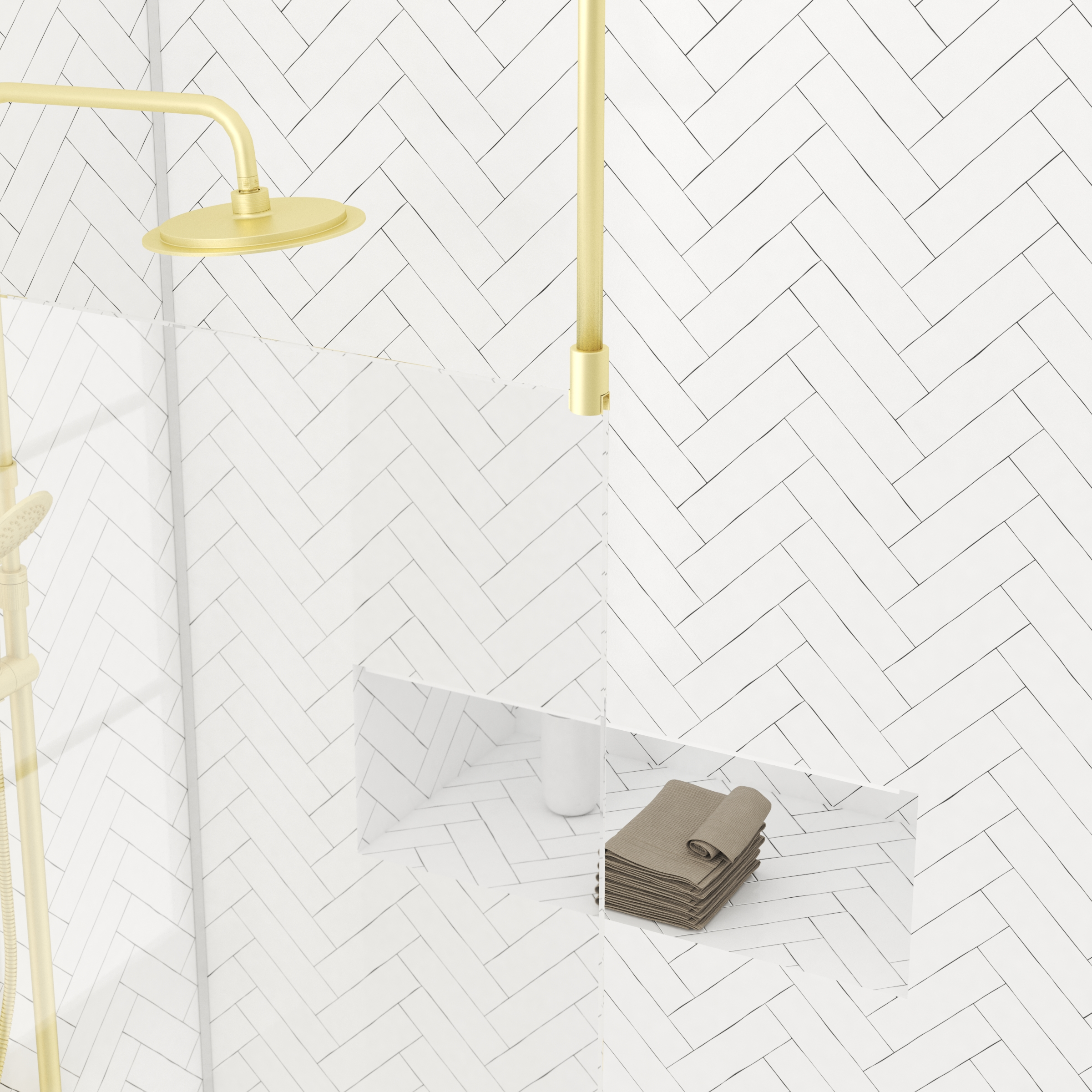 Paroi de Douche Or Doré Brossé 100x200cm - Porte-Serviette et Etagère