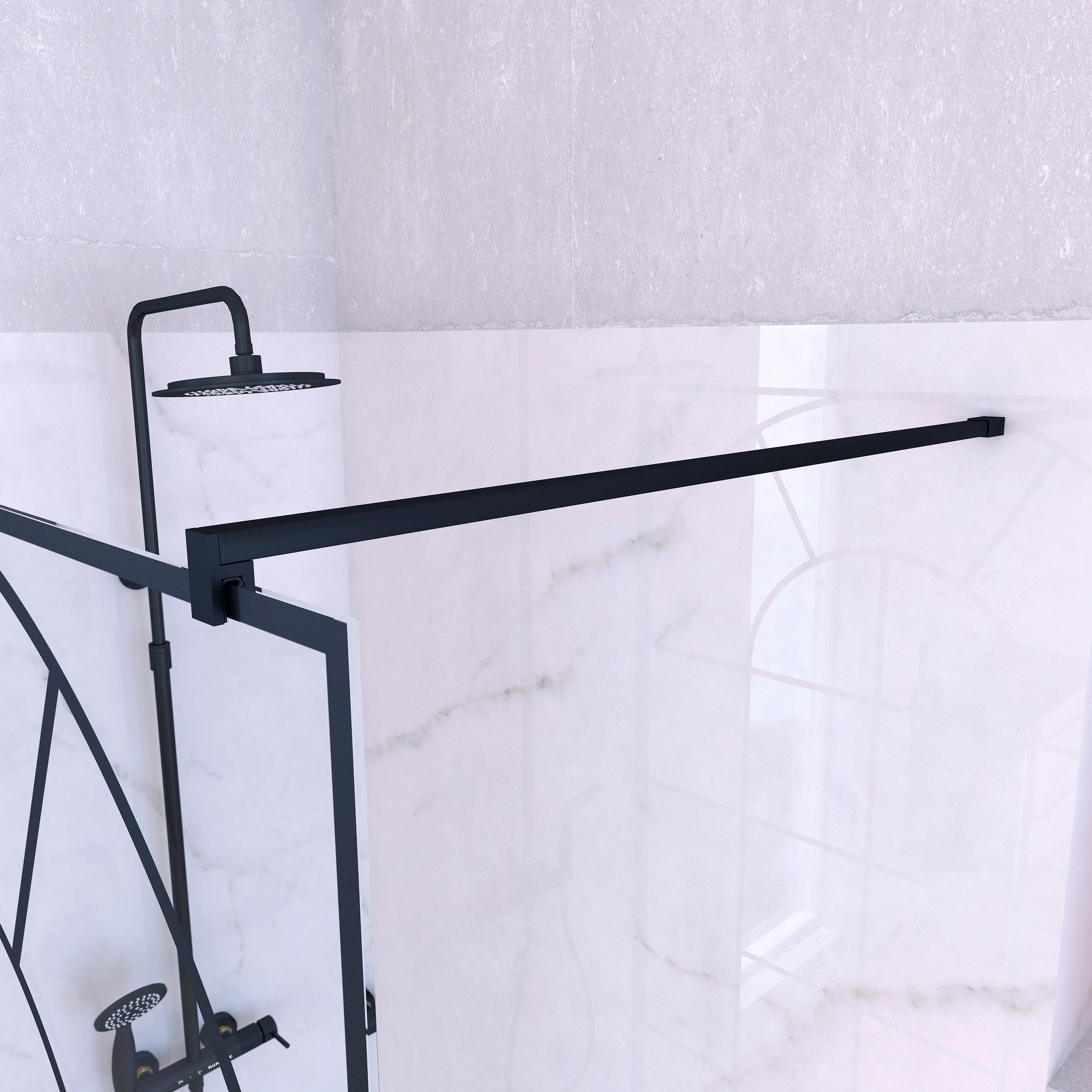 Paroi de Douche 120×195 Motif Verrière + Receveur 80×120 + Colonne de Douche Noire Thermostatique