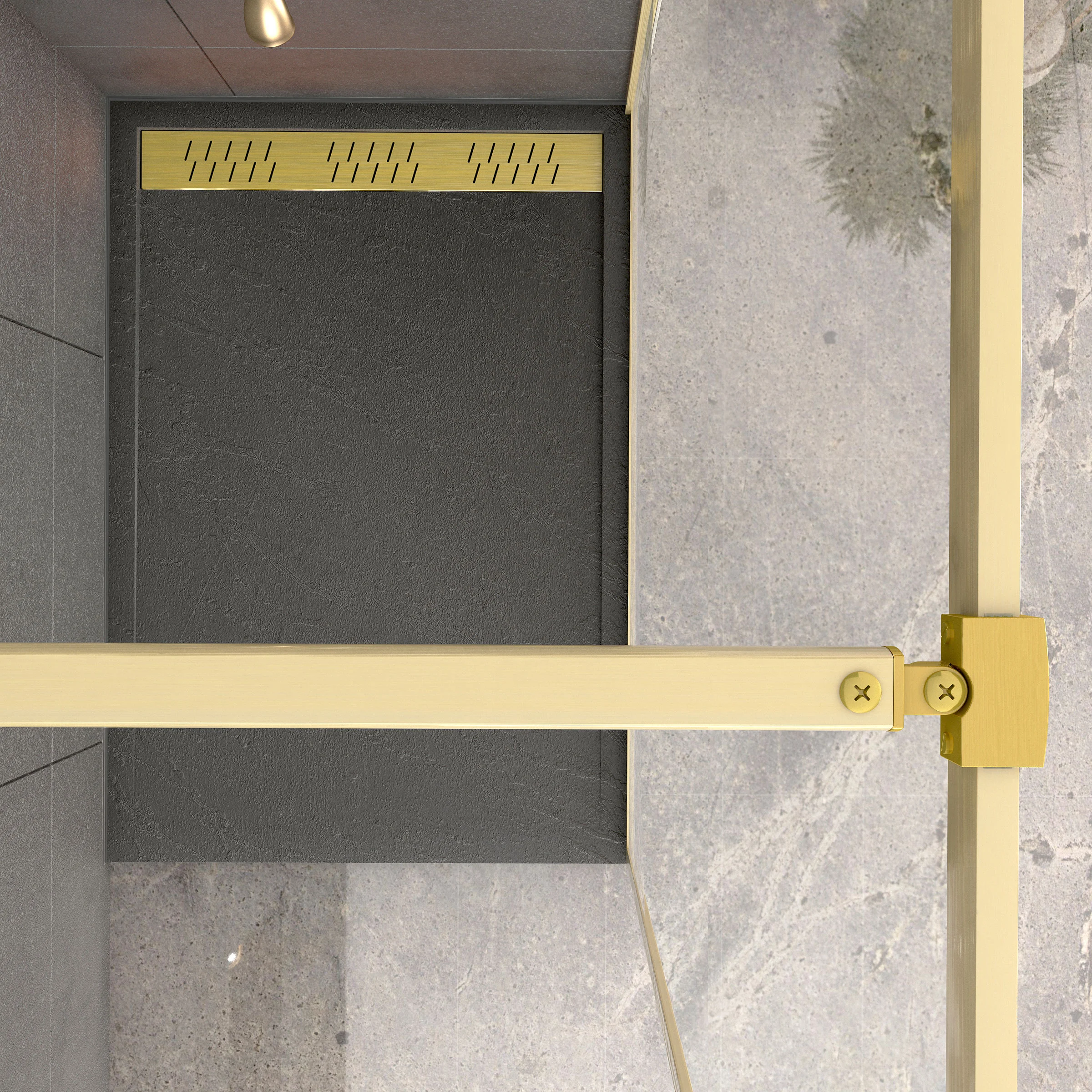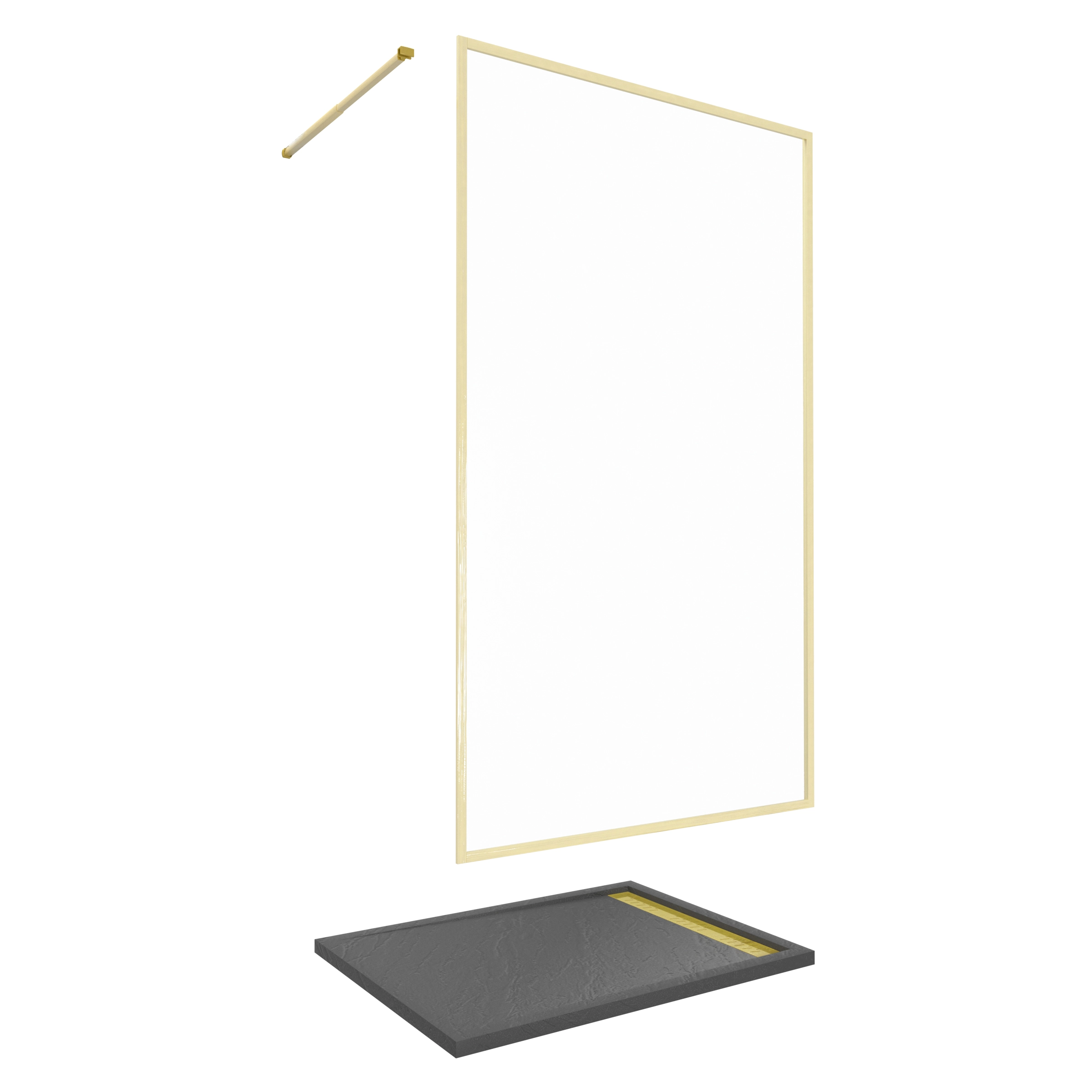 Paroi de Douche 120x200cm + Grille Finition Or Doré Brossé + Receveur Gris effet pierre 120x90x4cm