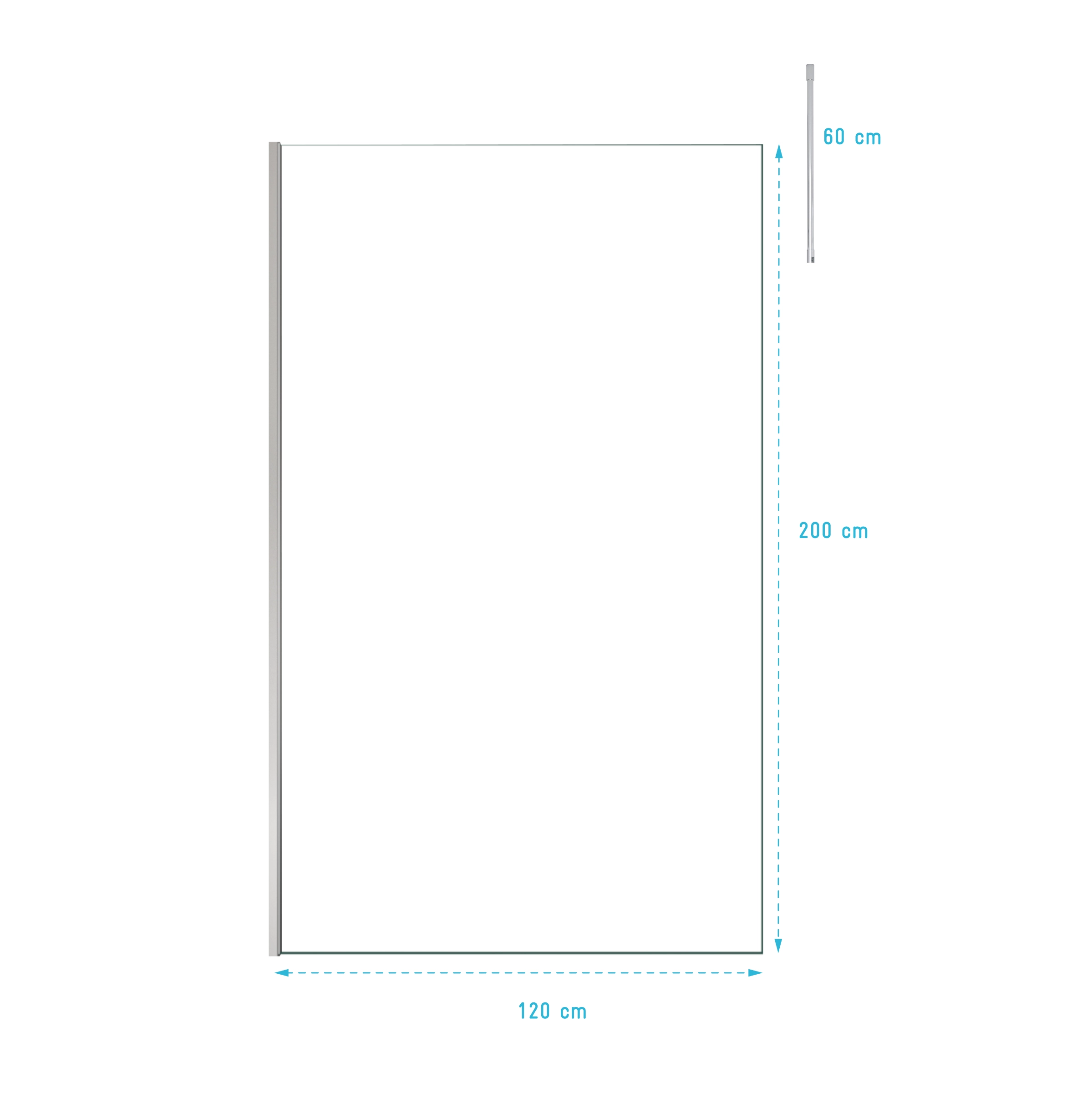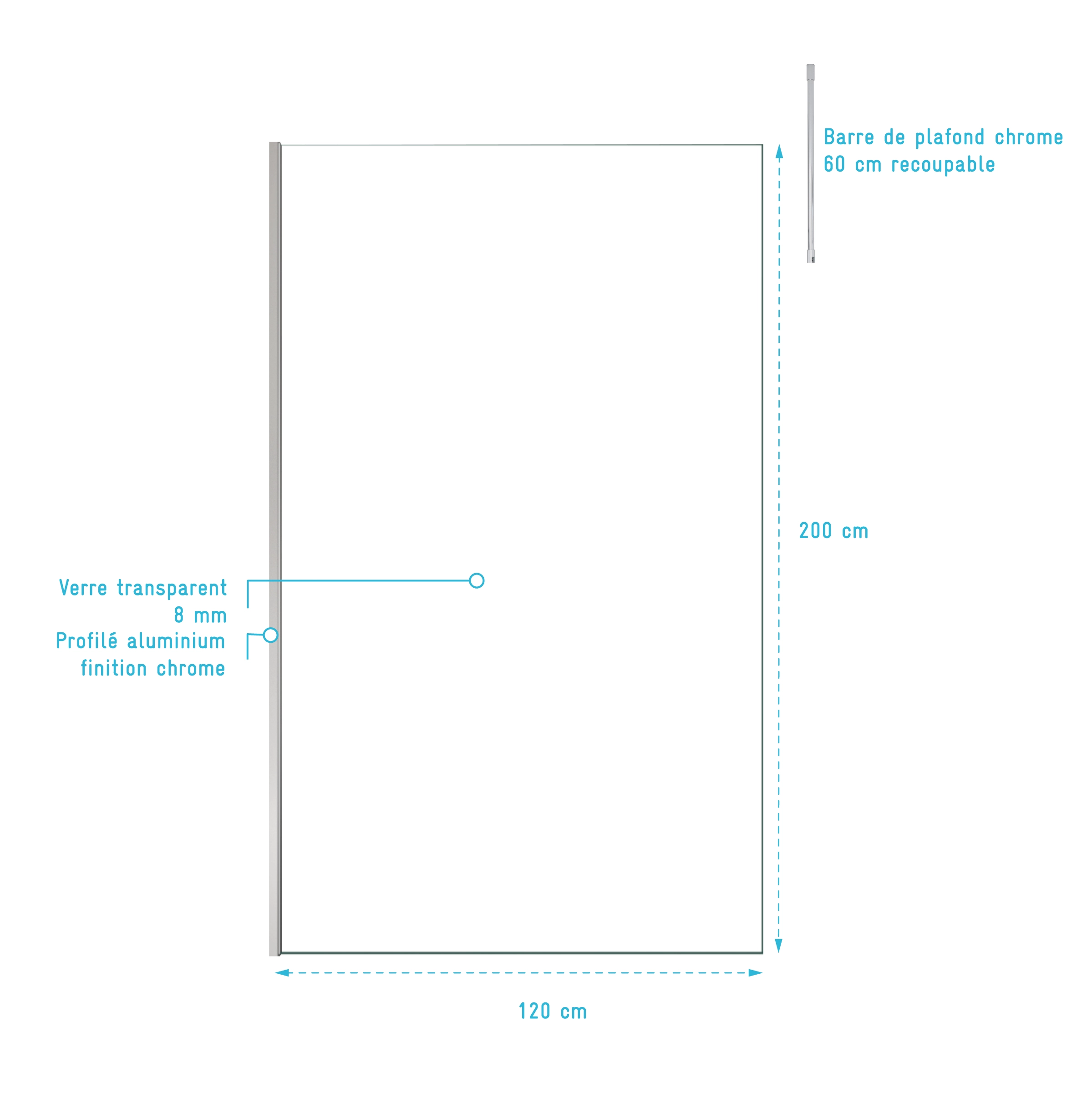 Paroi de Douche 120x200cm Verre Transparent – Profilé + Barre Plafond Finition Chrome – FREEDOM 2