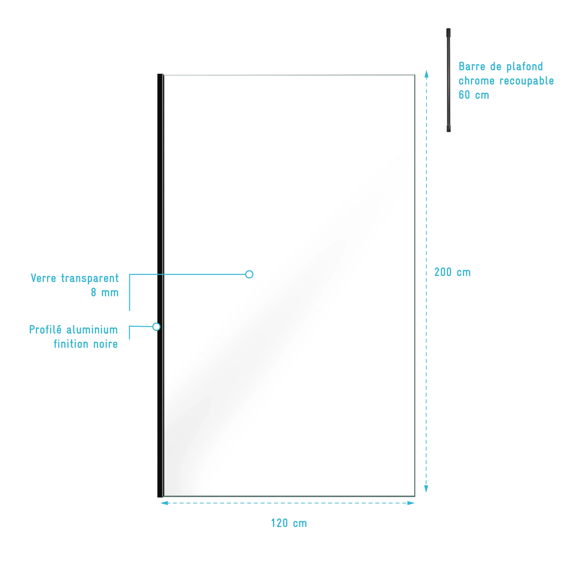 0 avis LEA Paroi de Douche 120x200cm - Verre Anticalcaire - Encadrement Ultra-Fin - Finition Noir Mat - LEA