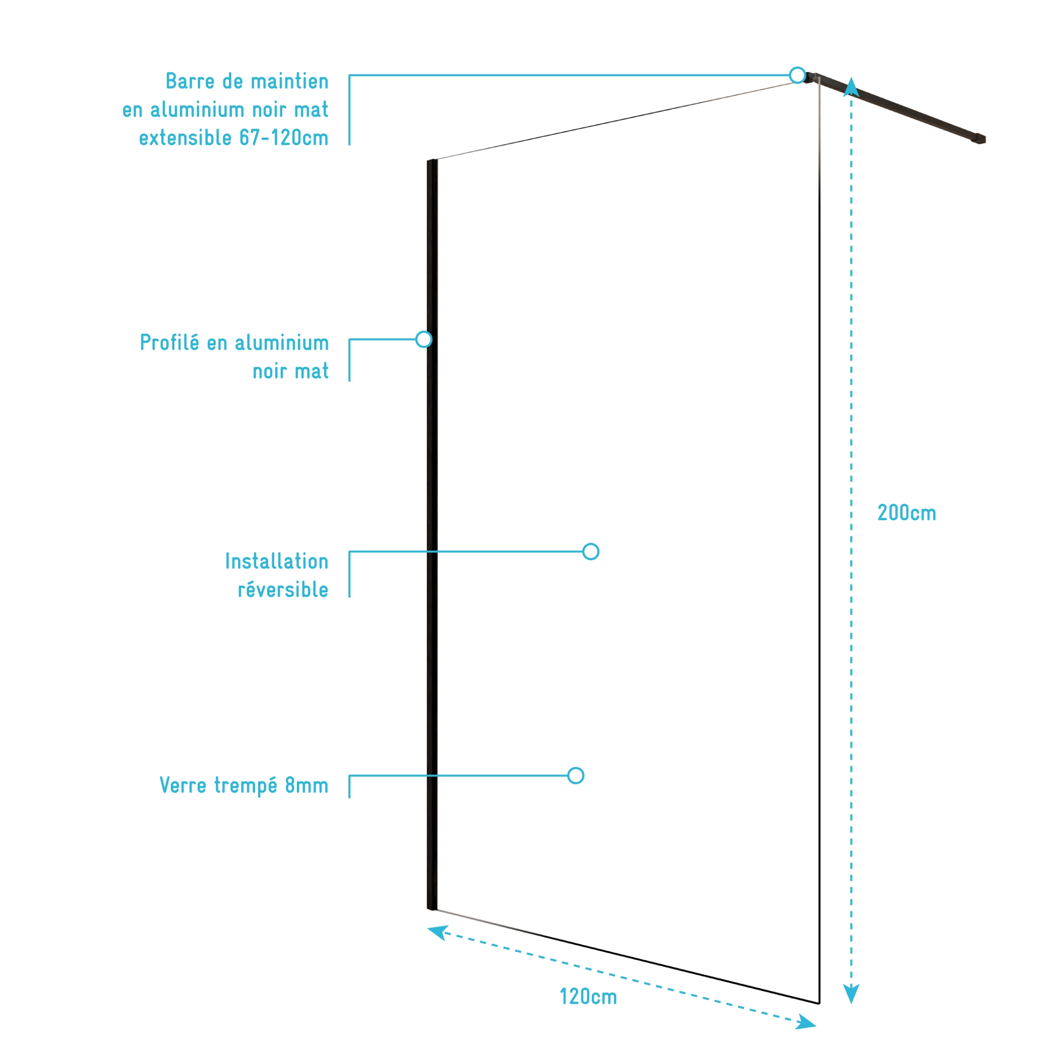 1 avis pour Paroi de Douche 120x200cm – Verre Trempé Transparent 8mm – Profilé Noir