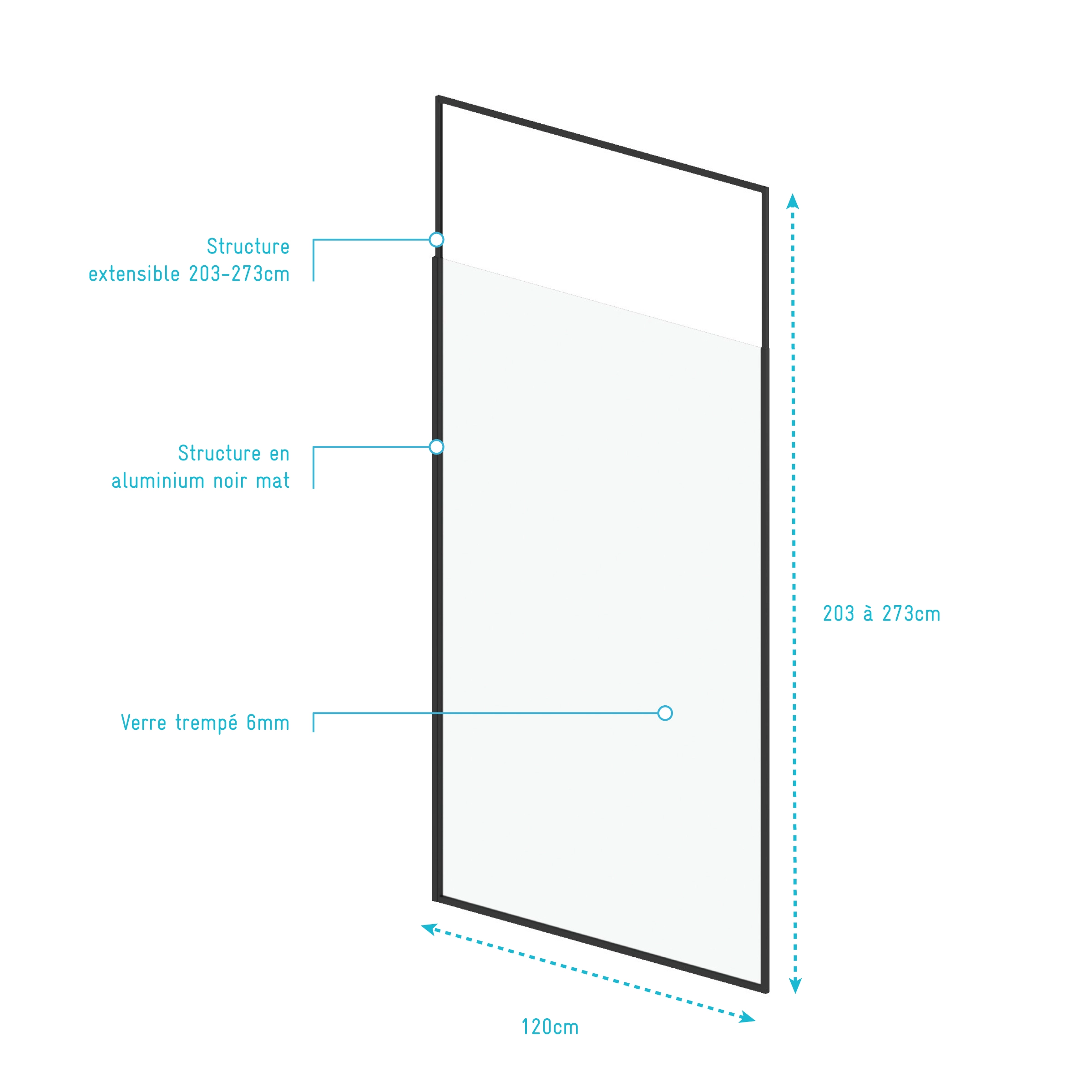 3 avis pour Paroi de douche 120x203cm à structure noir mat extensible 203cm à 273cm STRETCHY