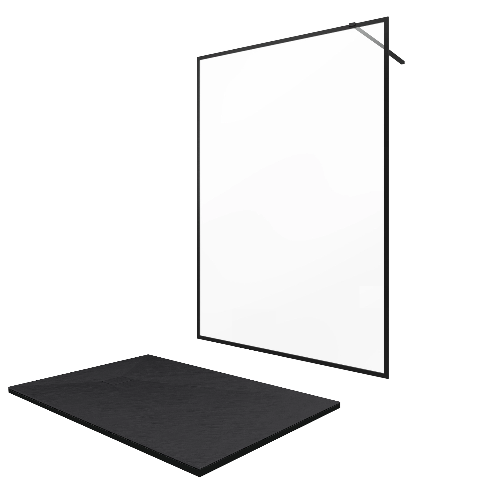 0 avis Pack Paroi de douche 90x195 cm + Receveur Noir effet pierre 140x90 cm