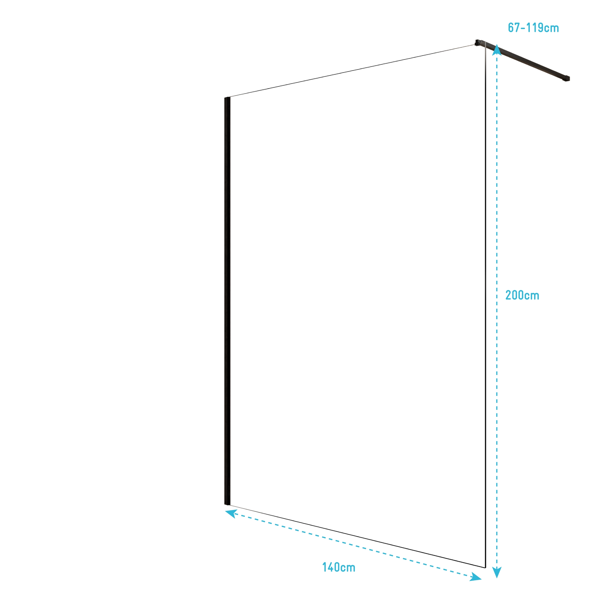 Paroi de Douche 140x200cm en Verre Trempé Transparent 8mm Anticalcaire – Profilé Noir Mat – LINA