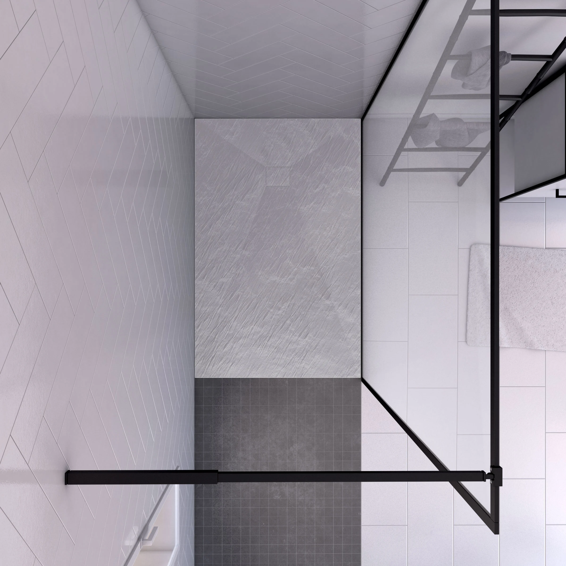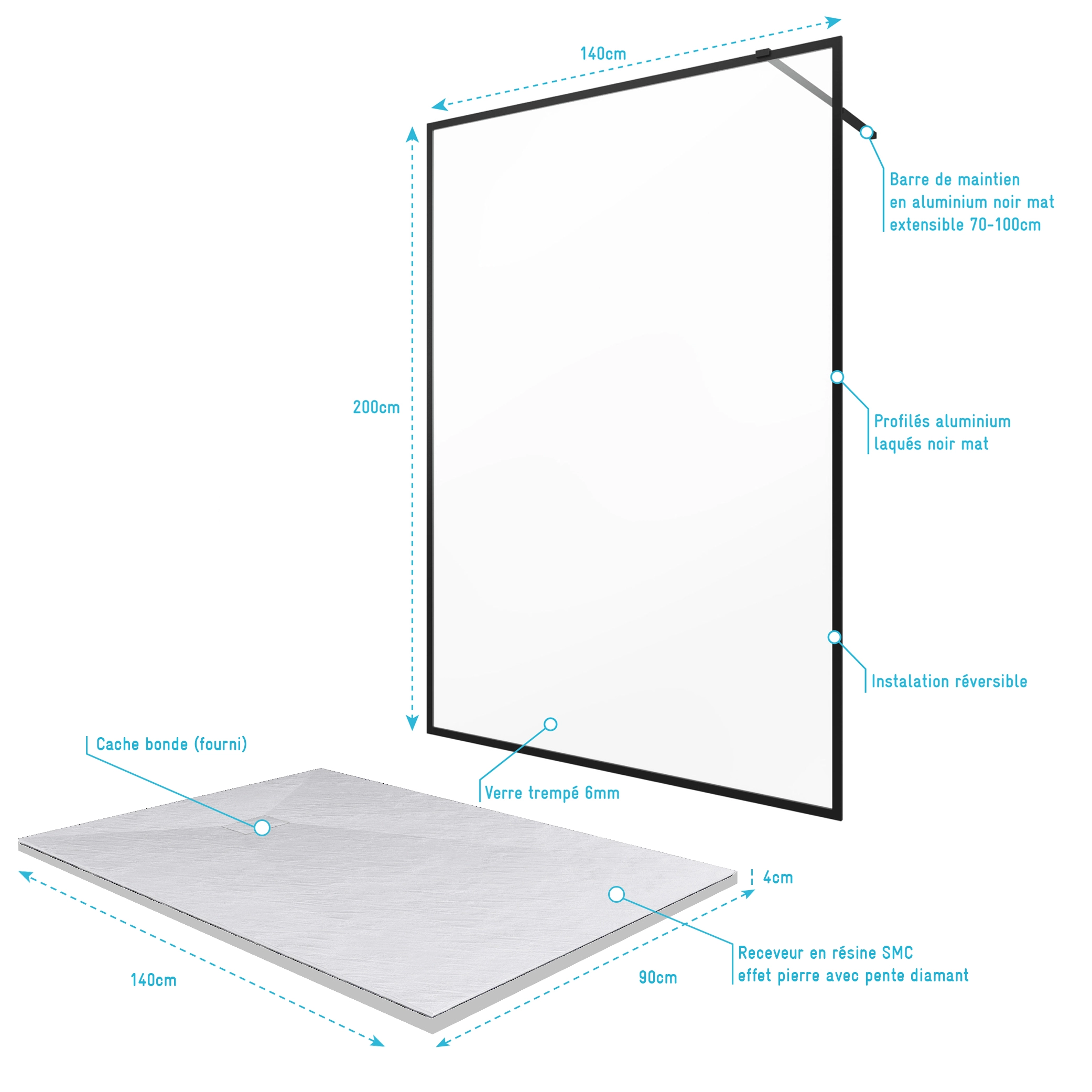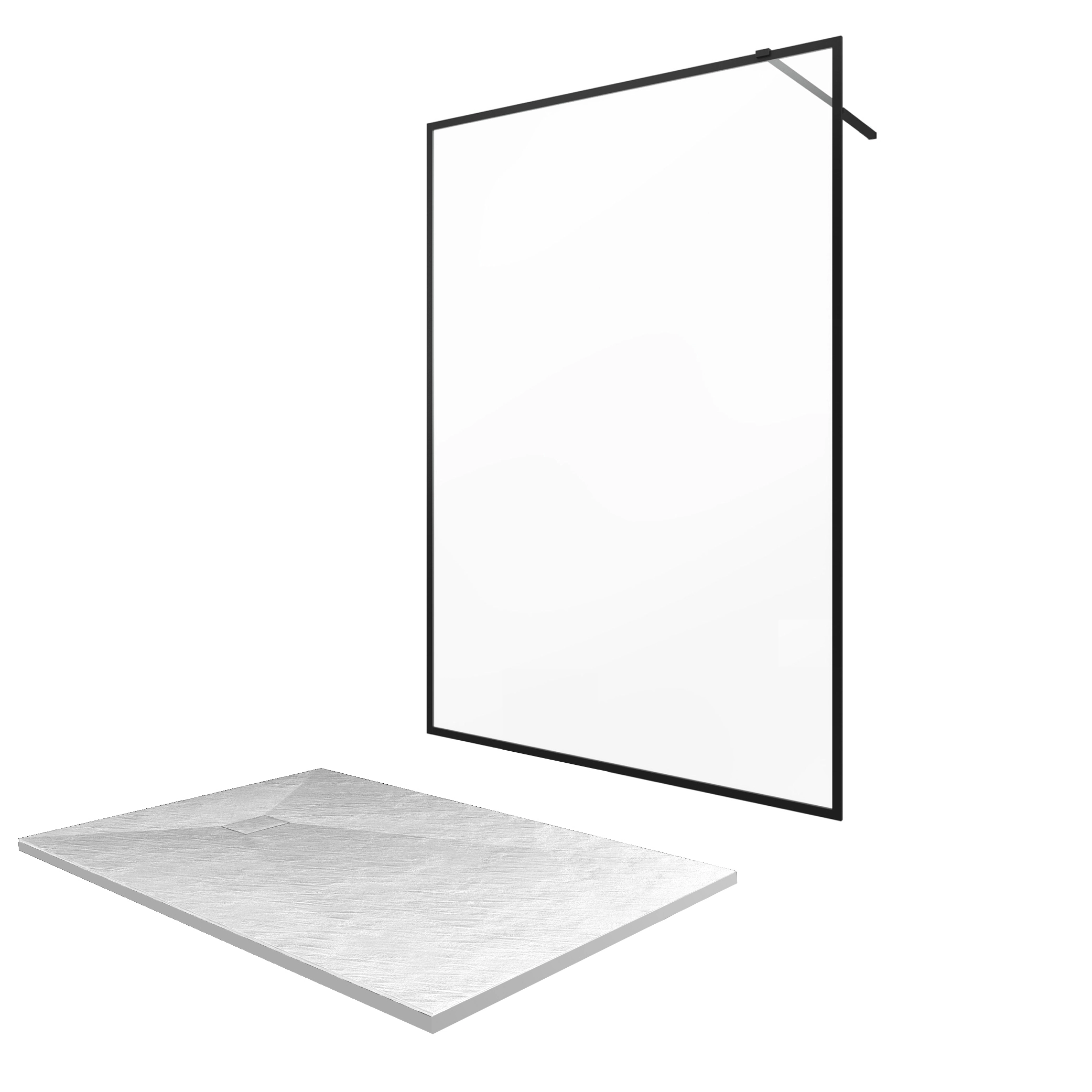 Paroi de douche 140x200cm + receveur a poser – 140x90cm – cadre et barre noir mat – CONTOURING 120