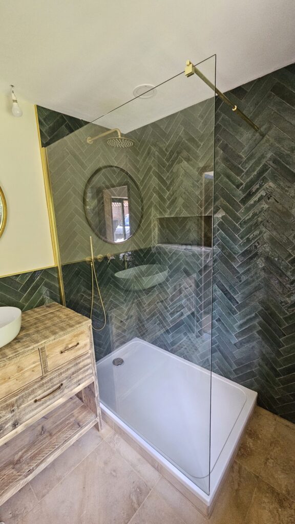 1 avis pour Paroi de Douche 140x200cm Verre Transparent – Barre de Fixation Extensible et Profil Or Brossé