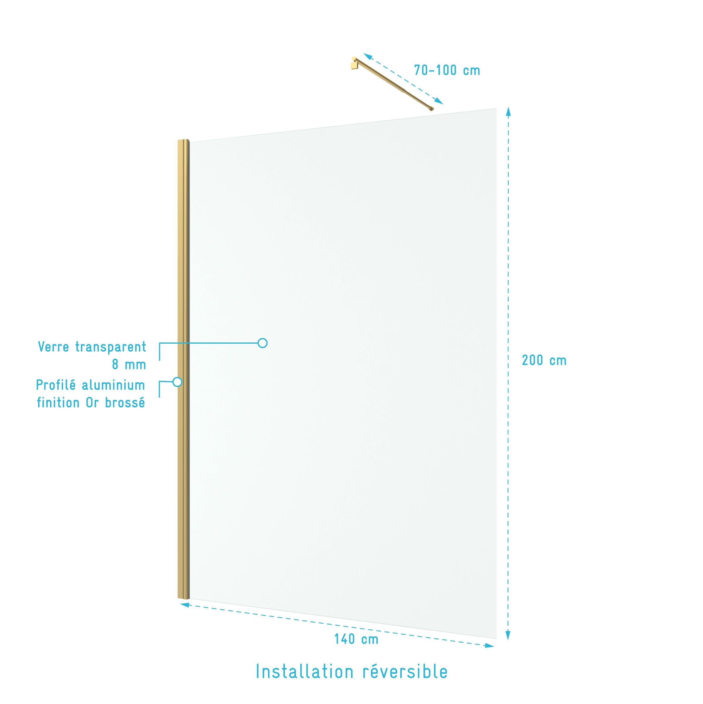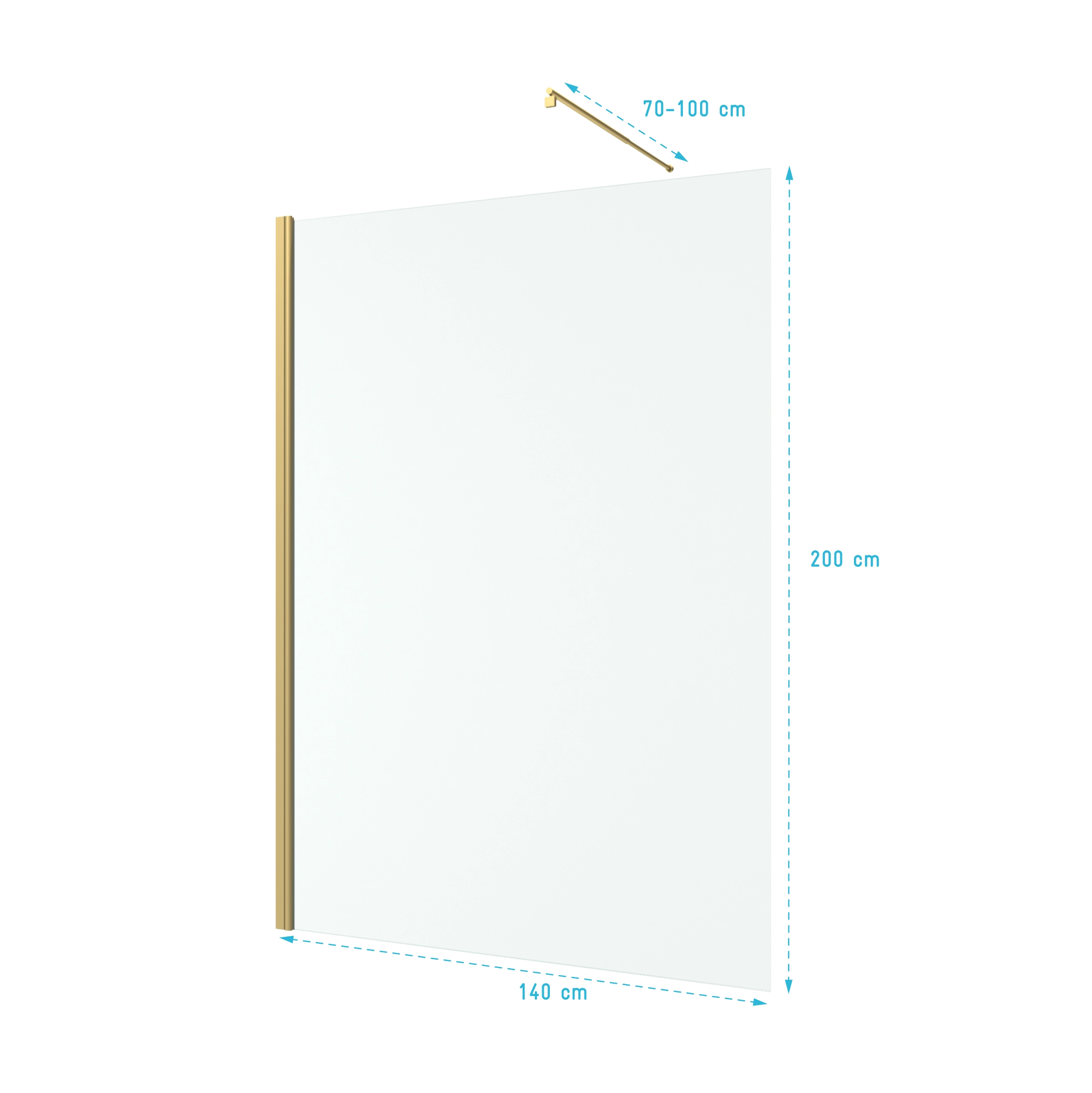Paroi de Douche 140x195 cm en Verre Trempé 5 mm - Finition Or Brossé - GOLD ELEMENTARY