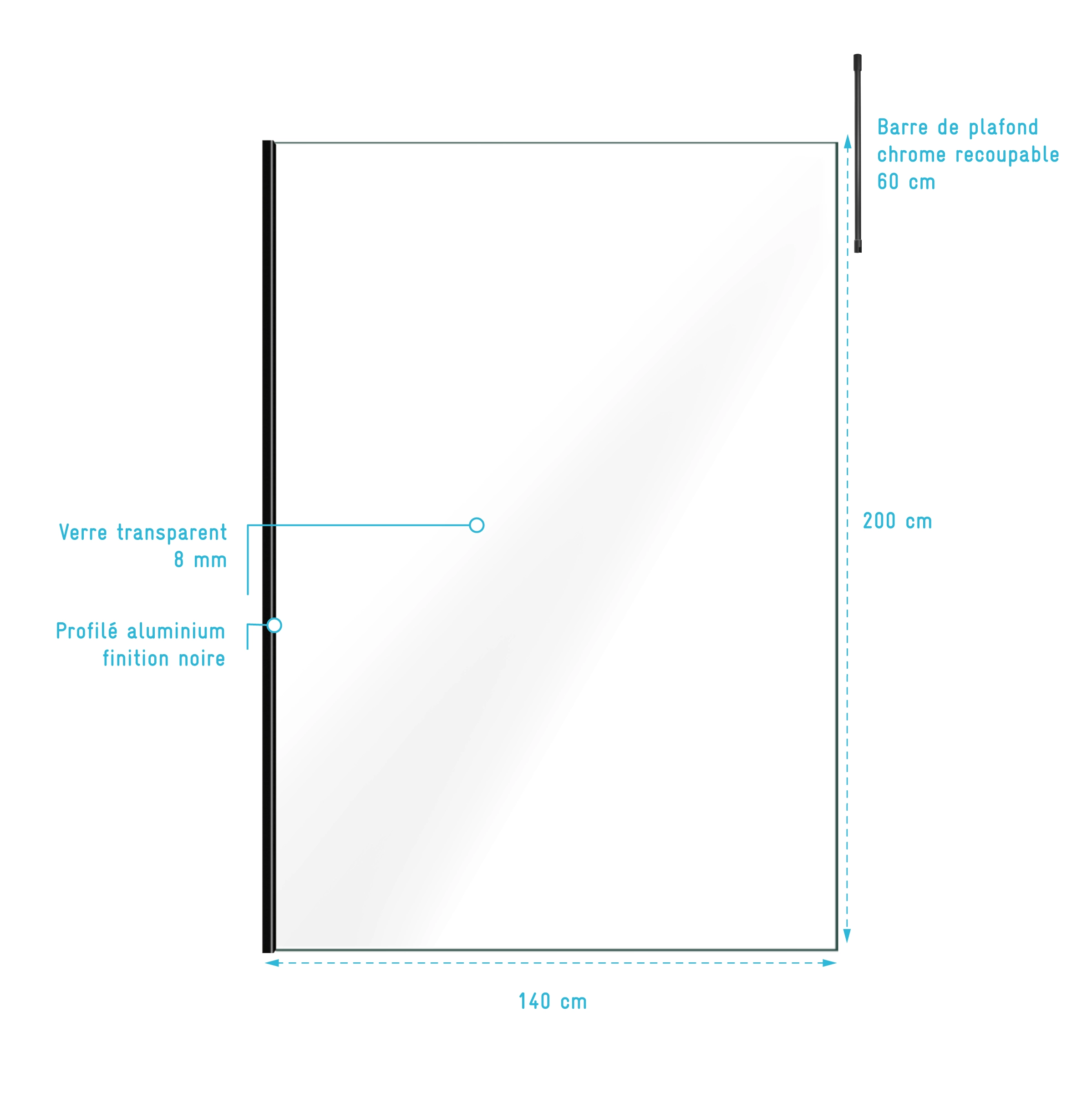 0 avis LEA Paroi de Douche 140x200cm - Verre Anticalcaire - Encadrement Ultra-Fin - Finition Noir Mat - LEA