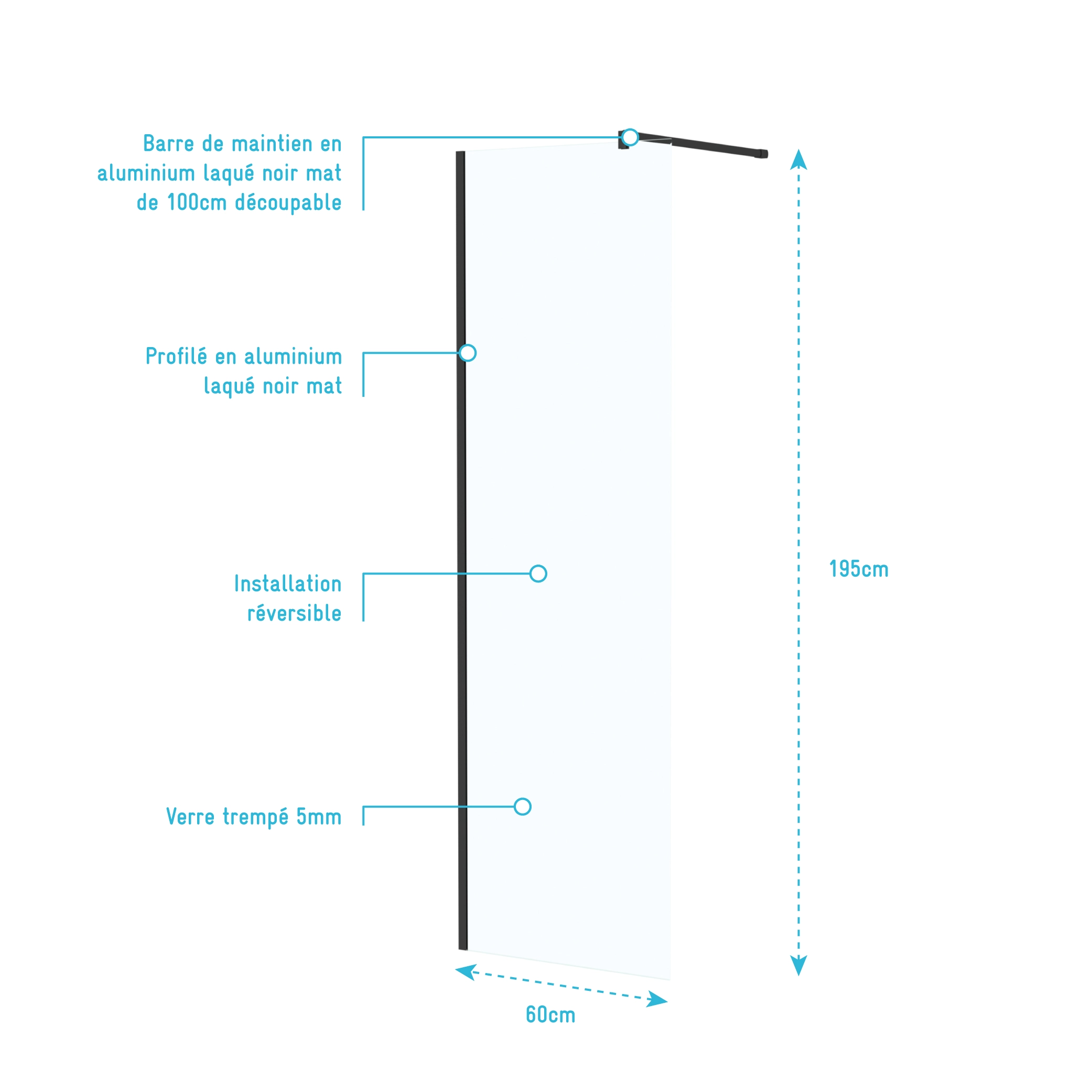 ‘Less is more’, allez à l’essentiel grâce à cette paroi de douche DARK ELEMENTARY. La paroi de douche à l’italienne, moderne et incontournable, à l’avantage de faciliter l’accès à la douche. Elle rend également votre pièce plus lumineuse et spacieuse. La finition Noire des profilés et du bras de maintien peaufineront la décoration de votre pièce d’eau. Le verre trempé 5mm, plus résistant que le verre simple, vous assure une grande sécurité face aux chocs.