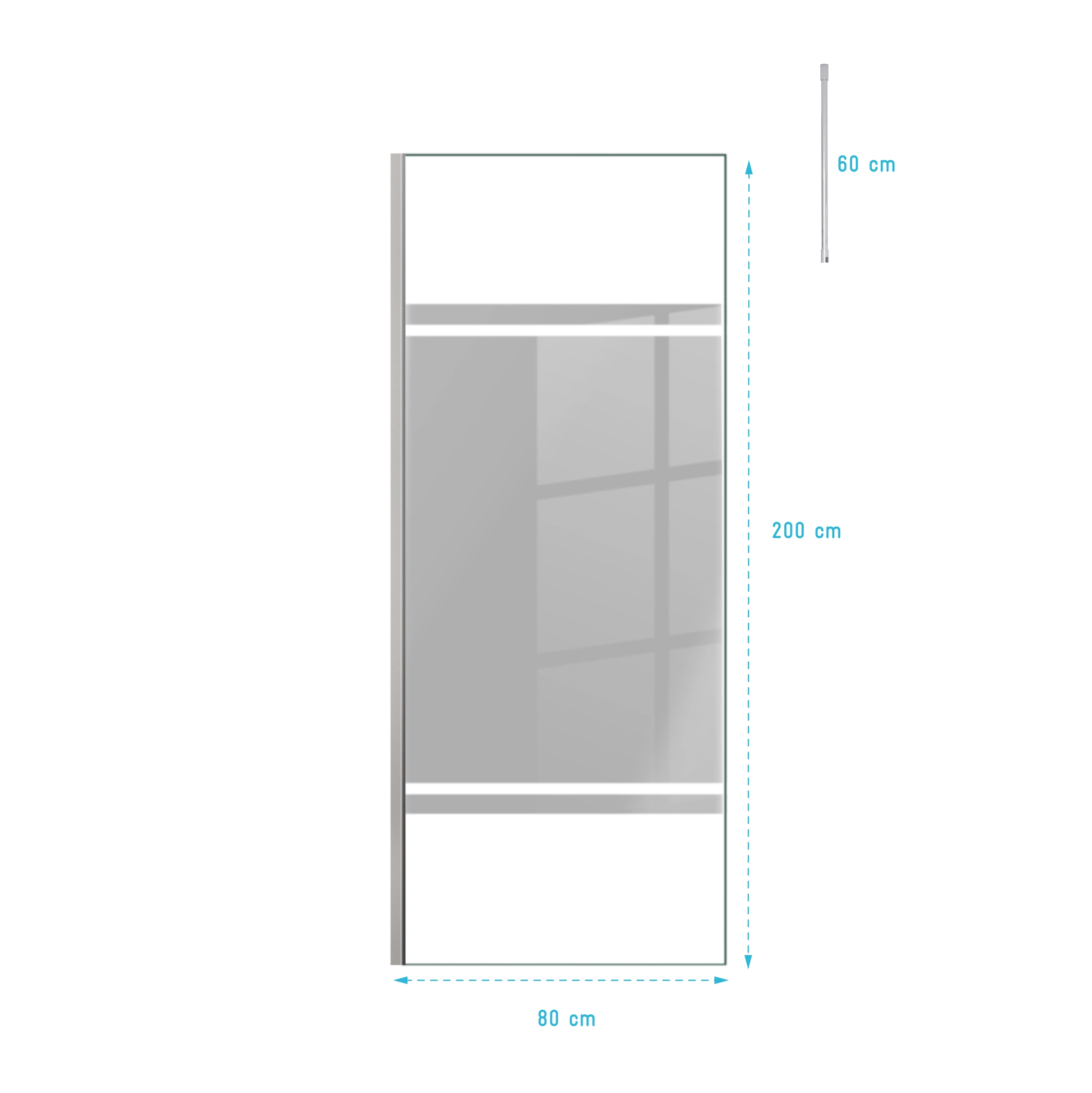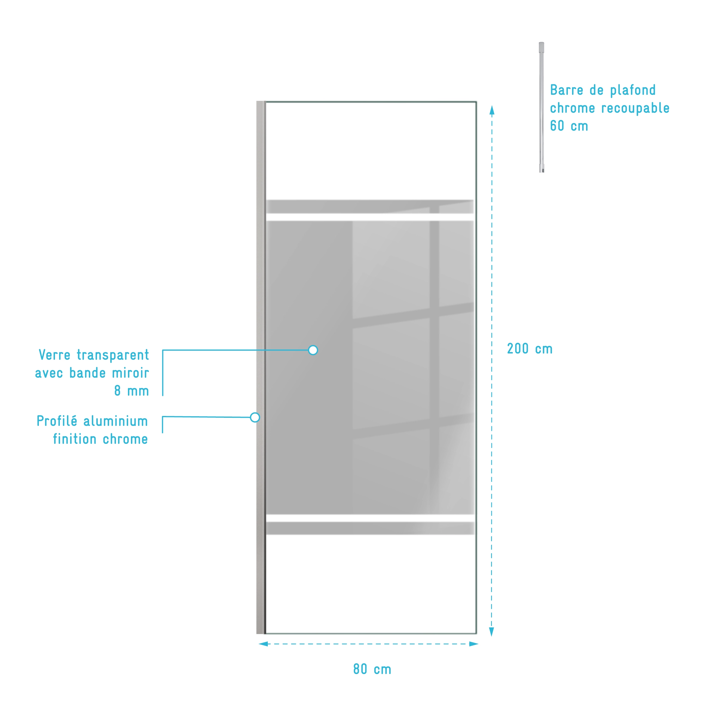 Paroi de Douche 80x200cm Miroir – Profilé + Barre Plafond Finition Chrome – FREEDOM 2 MIRROR