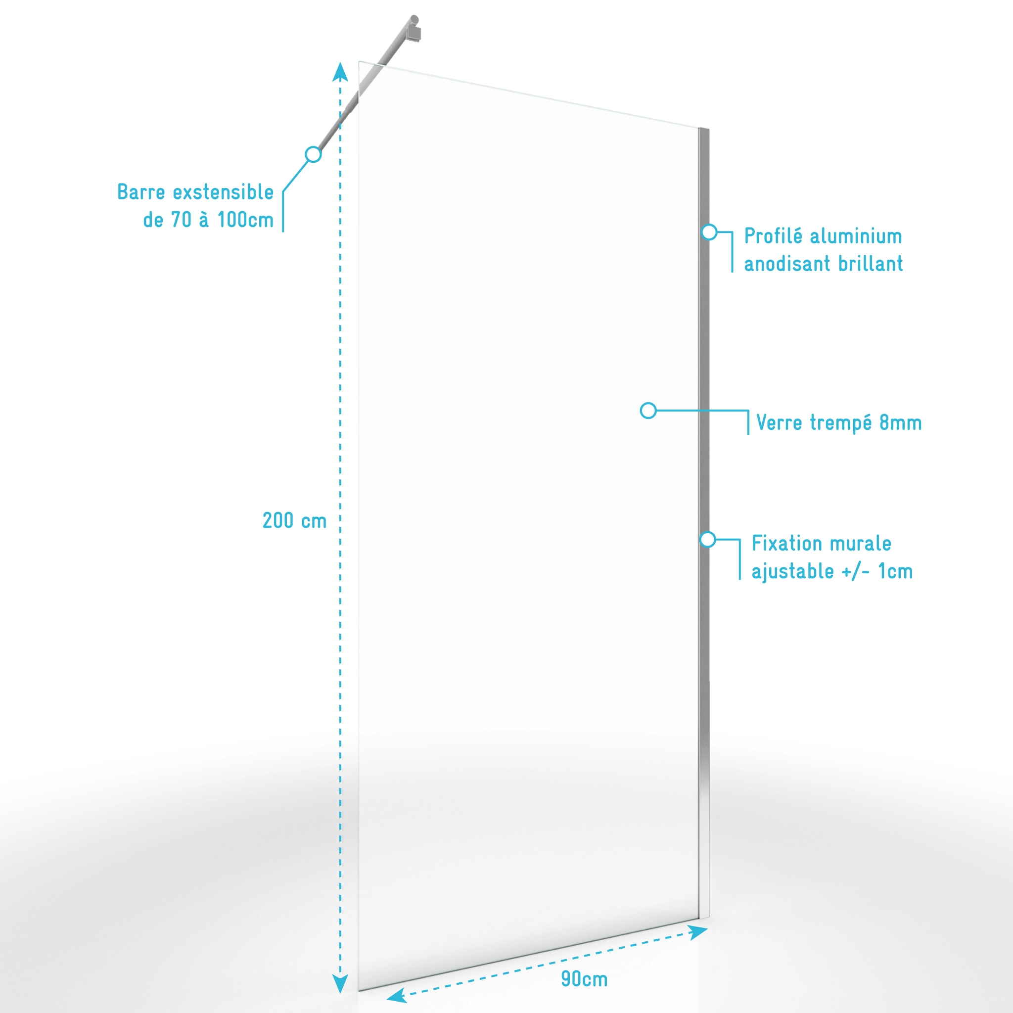 3 avis pour Paroi de Douche 80x200cm Verre Transparent – Barre de Fixation Extensible et Profil Chrome