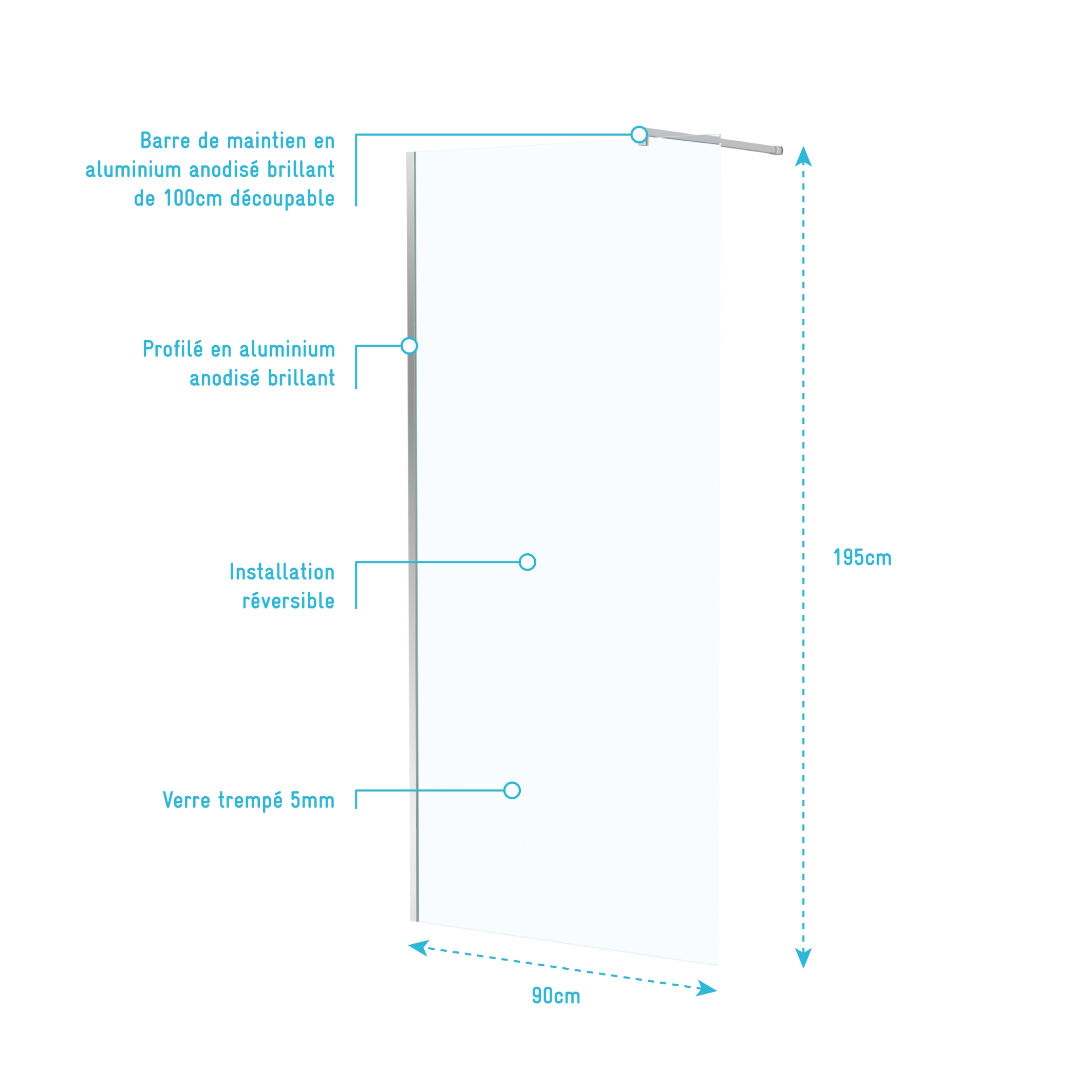 4 avis pour Paroi de Douche 90×195 cm en Verre Trempé 5 mm – Finition Chromé – CHROMED ELEMENTARY