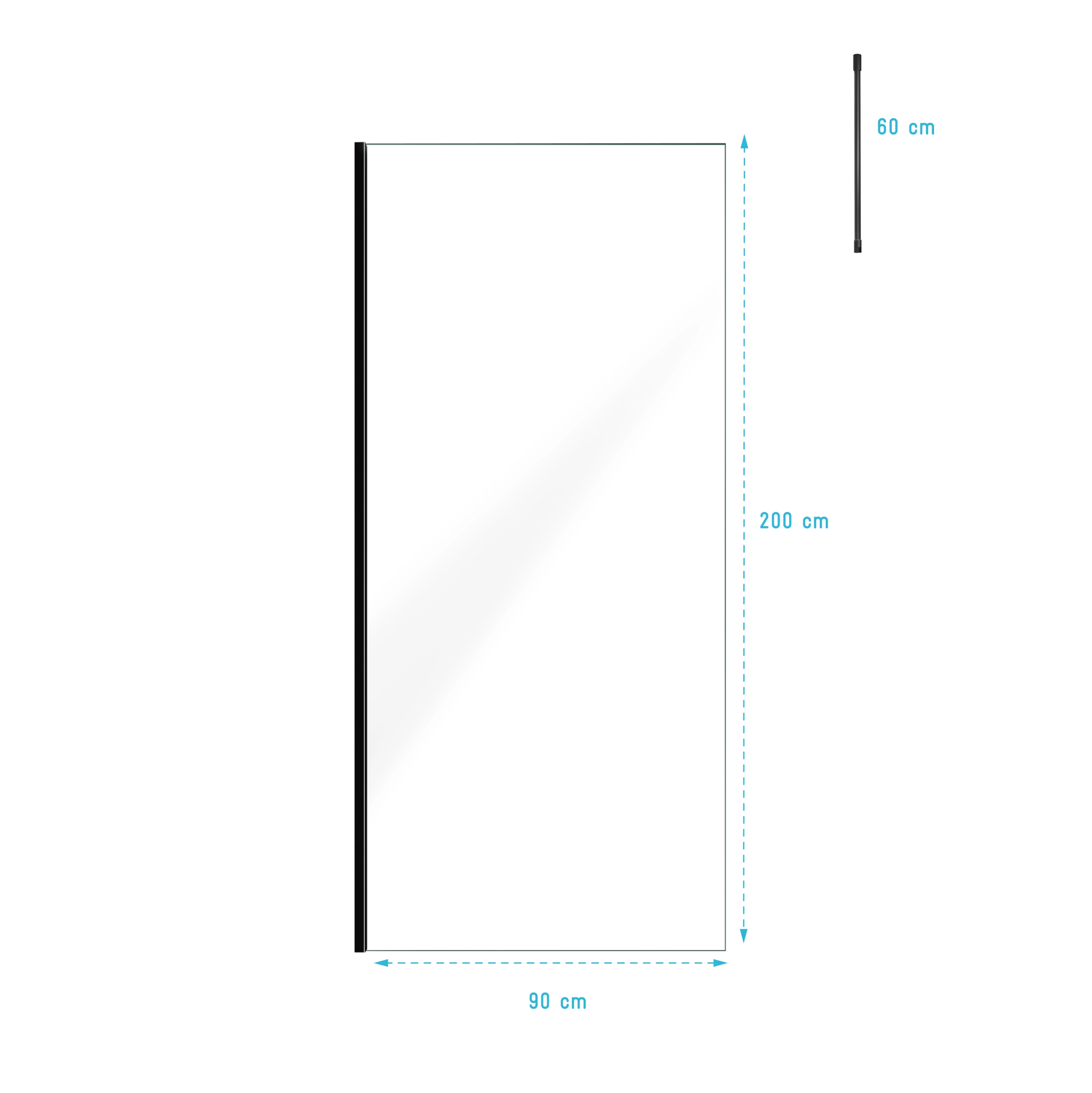 Paroi de Douche 90x200cm Verre Transparent – Profilé + Barre Plafond Noire – FREEDOM 2 BLACK