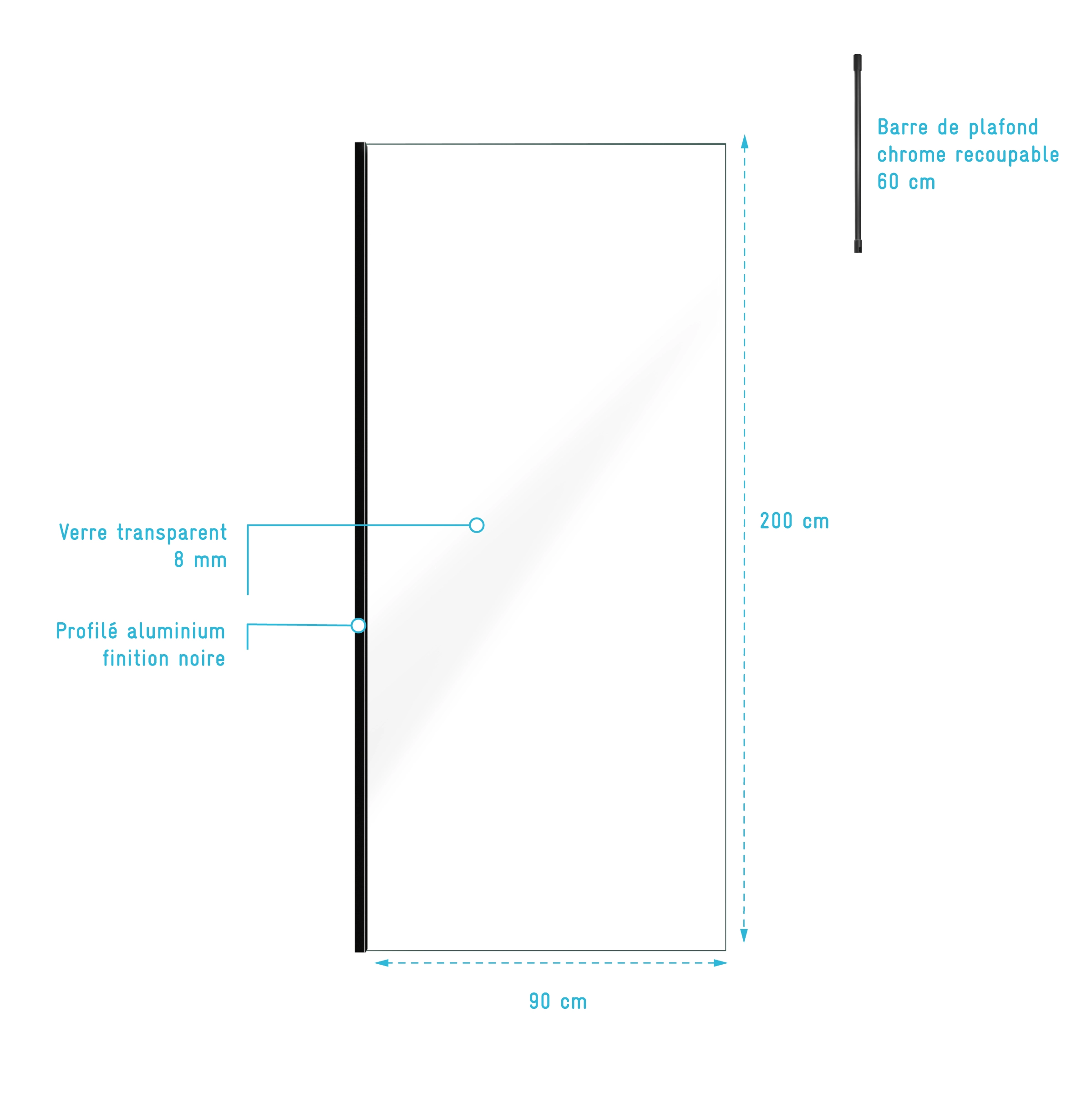 0 avis LEA Paroi de Douche 90x200cm - Verre Anticalcaire - Encadrement Ultra-Fin - Finition Noir Mat - LEA