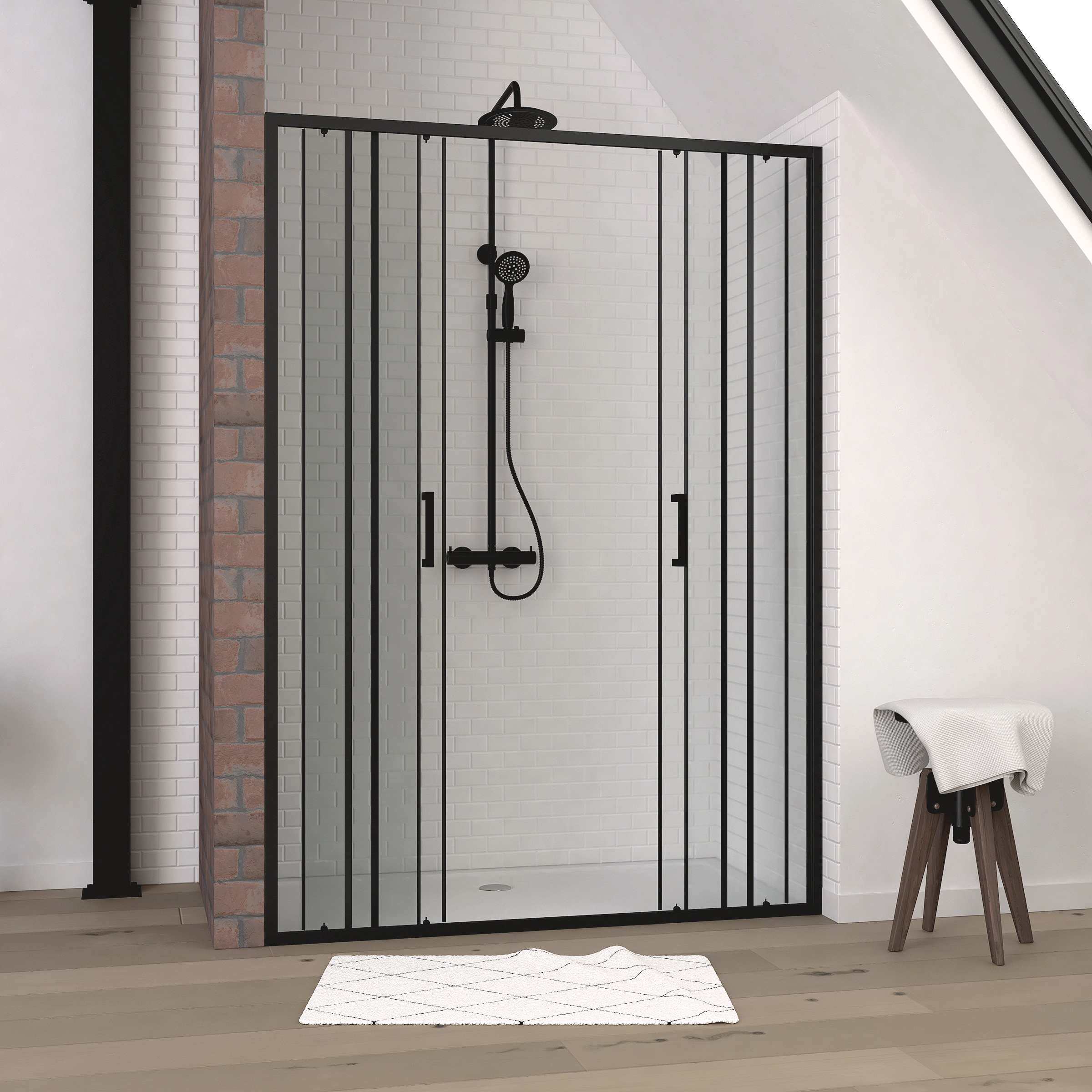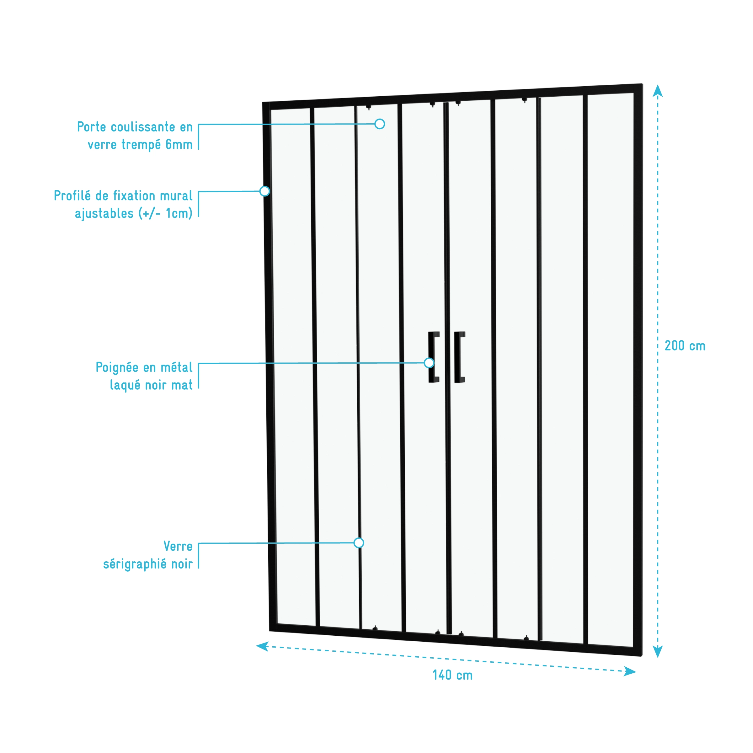 Paroi de douche 2 portes coulissantes 140x200 cm - Verre sérigraphié - Profilé Noir - CRUSHX