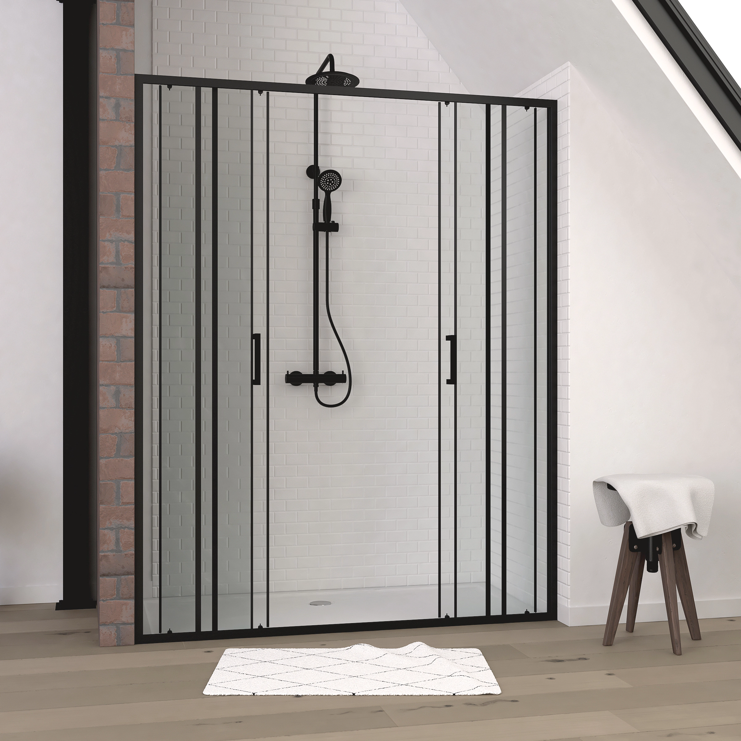 2 avis CRUSH Porte de douche Double Coulissant 160x200 cm - Verre transparent - Profilé Noir - CRUSH
