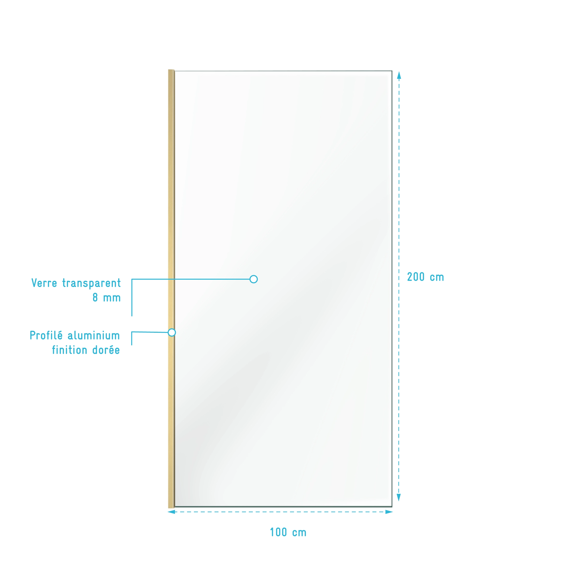 Paroi de Douche 100x200cm - Verre Anticalcaire - Encadrement Ultra-Fin - Finition Or Brossé - LEA