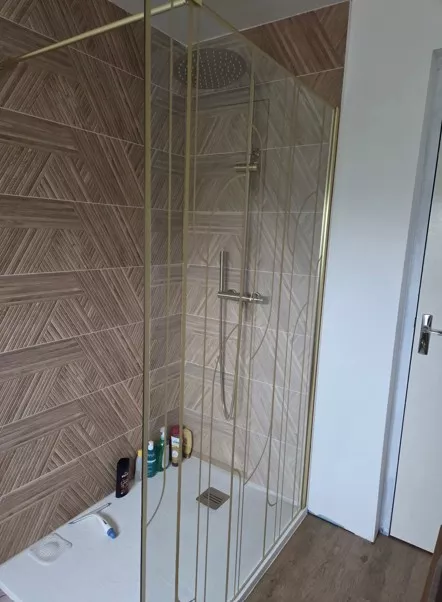 Élégant jusque dans les moindres détails, le profilé mural en aluminium aspect or brossé soutiendra parfaitement la paroi en verre et ajoutera la dernière touche finale à votre salle de bains.
