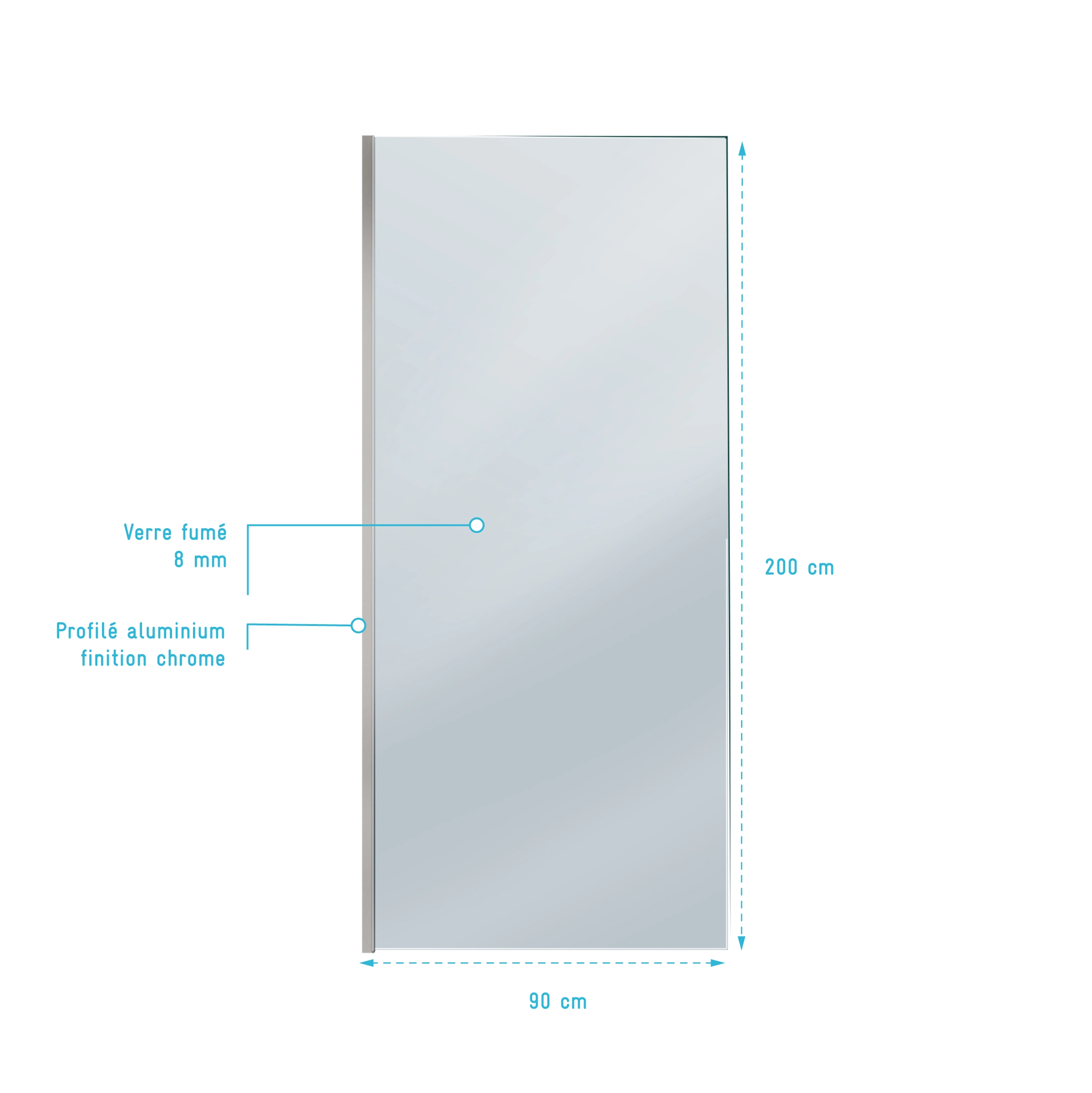 Paroi de Douche 90x200cm – Verre Trempé Fumé 8mm – Profilé Chrome – FREEDOM 2 SMOKED