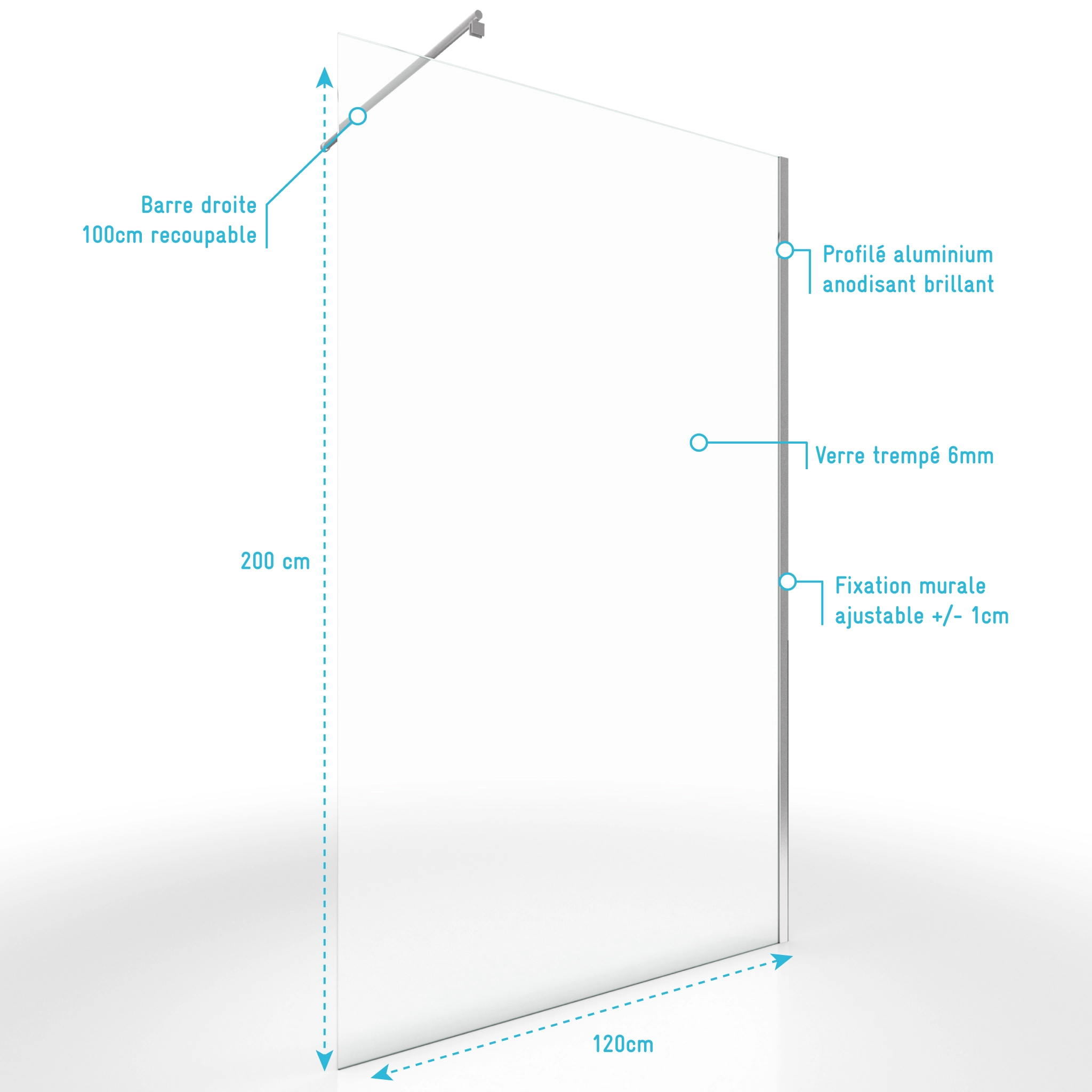1 avis pour Paroi de douche a l’italienne – VERRE TRANSPARENT 6mm – paroi + Barre de fixation recoupable