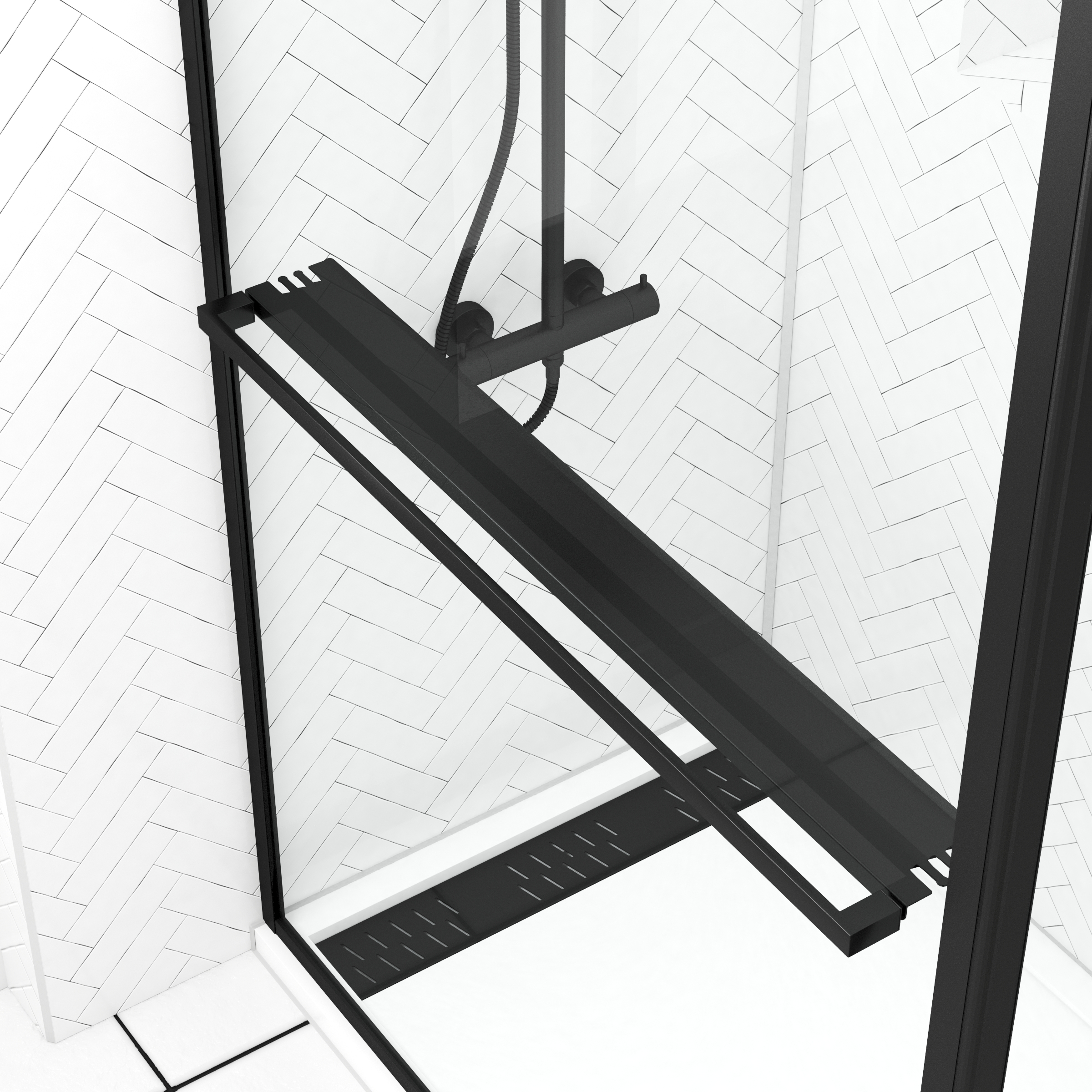1 avis pour Paroi de Douche avec Volet Pivotant 120+40x200cm – Profilé, Porte-serviette et étagère NOIR MAT