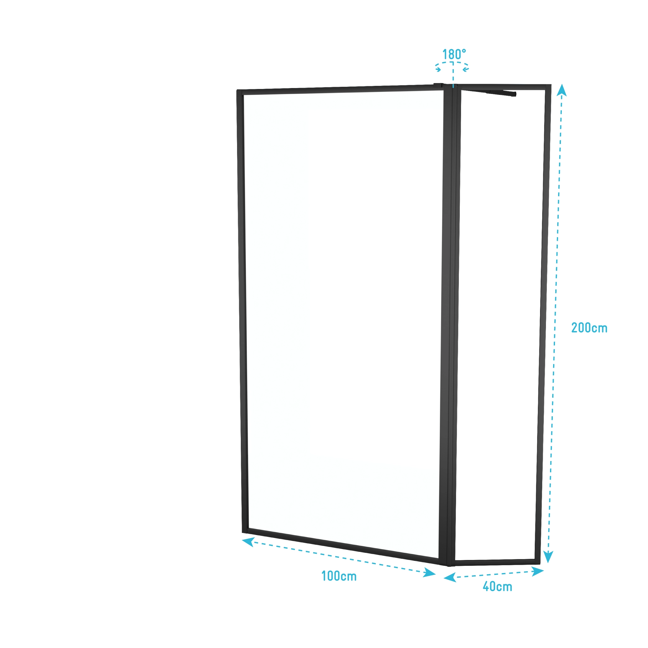 Paroi de Douche avec Volet Pivotant – Cadre et Bras Alu. NOIR MAT – 100+40x200cm – DARK CONTOURING