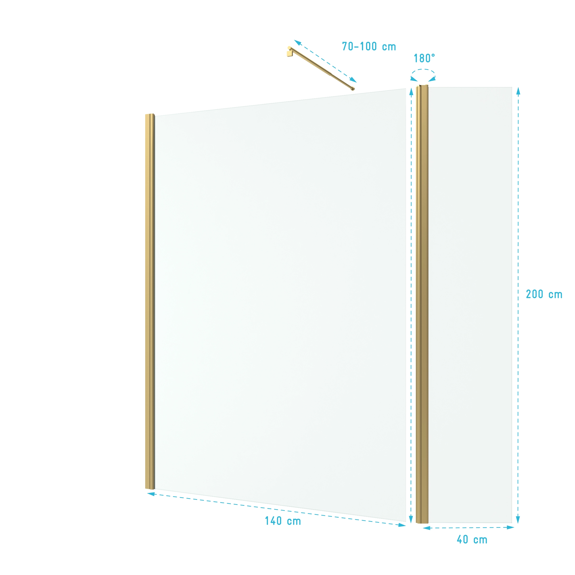 Paroi de Douche et Volet Pivotant 140+40×200 cm – Profilé + Barre de Fixation Or Doré Brossé