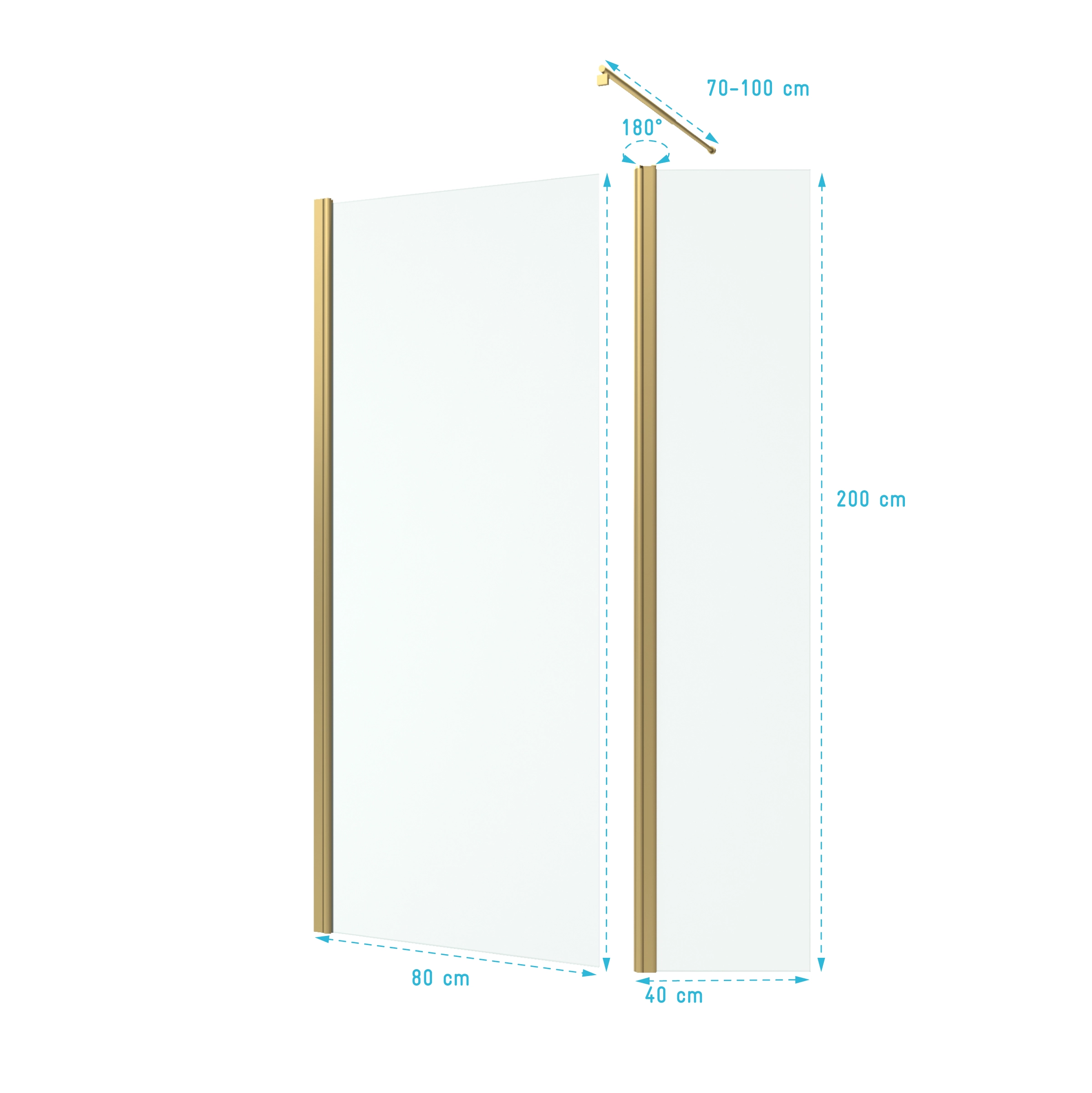 4 avis pour Paroi de Douche et Volet Pivotant 80+40×200 cm – Profilé + Barre de Fixation Or Doré Brossé