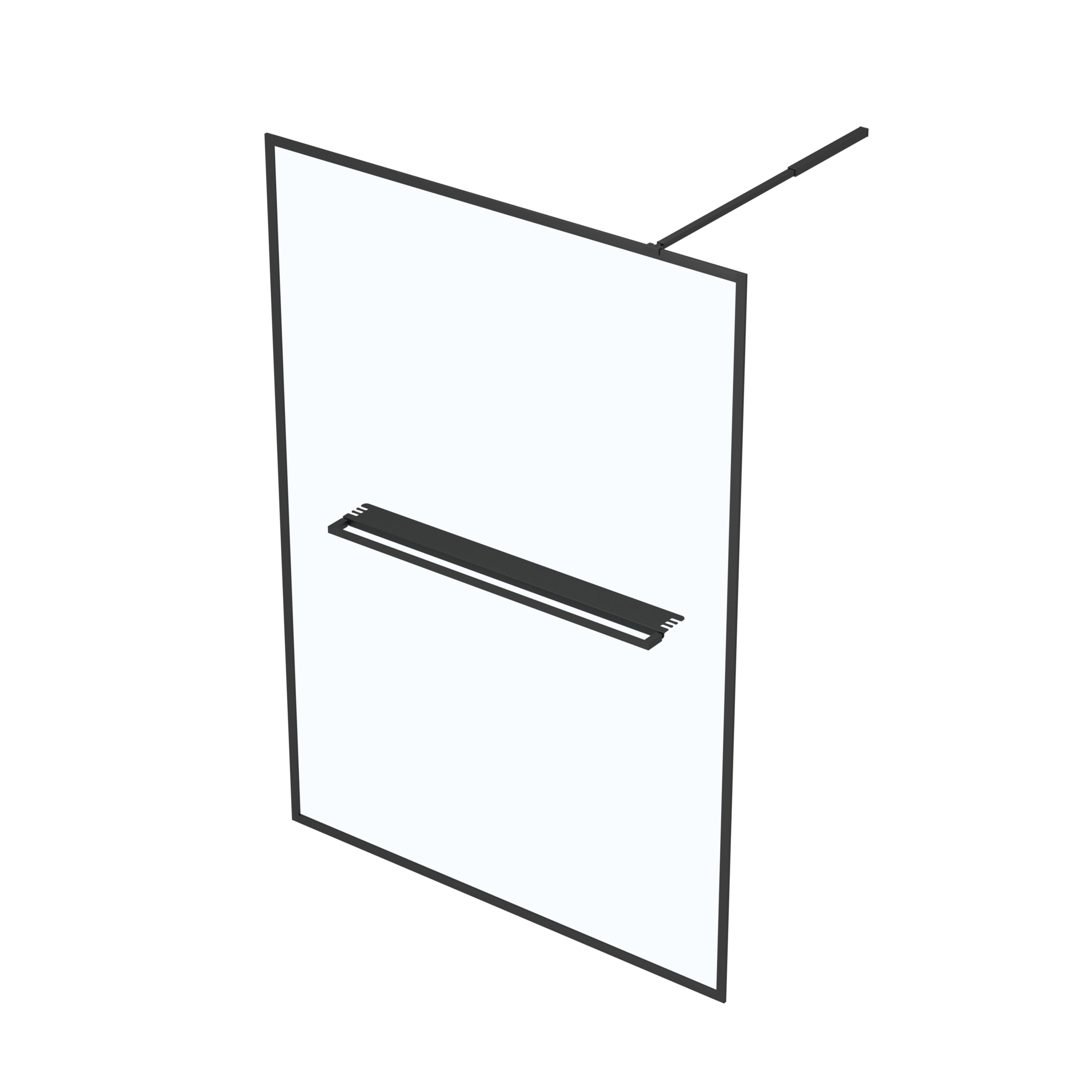 Moderne et pratique, la paroi Dark Contouring Shelf s’agrémente d’un porte-serviette et d’une étagère en aluminium Noir Mat.