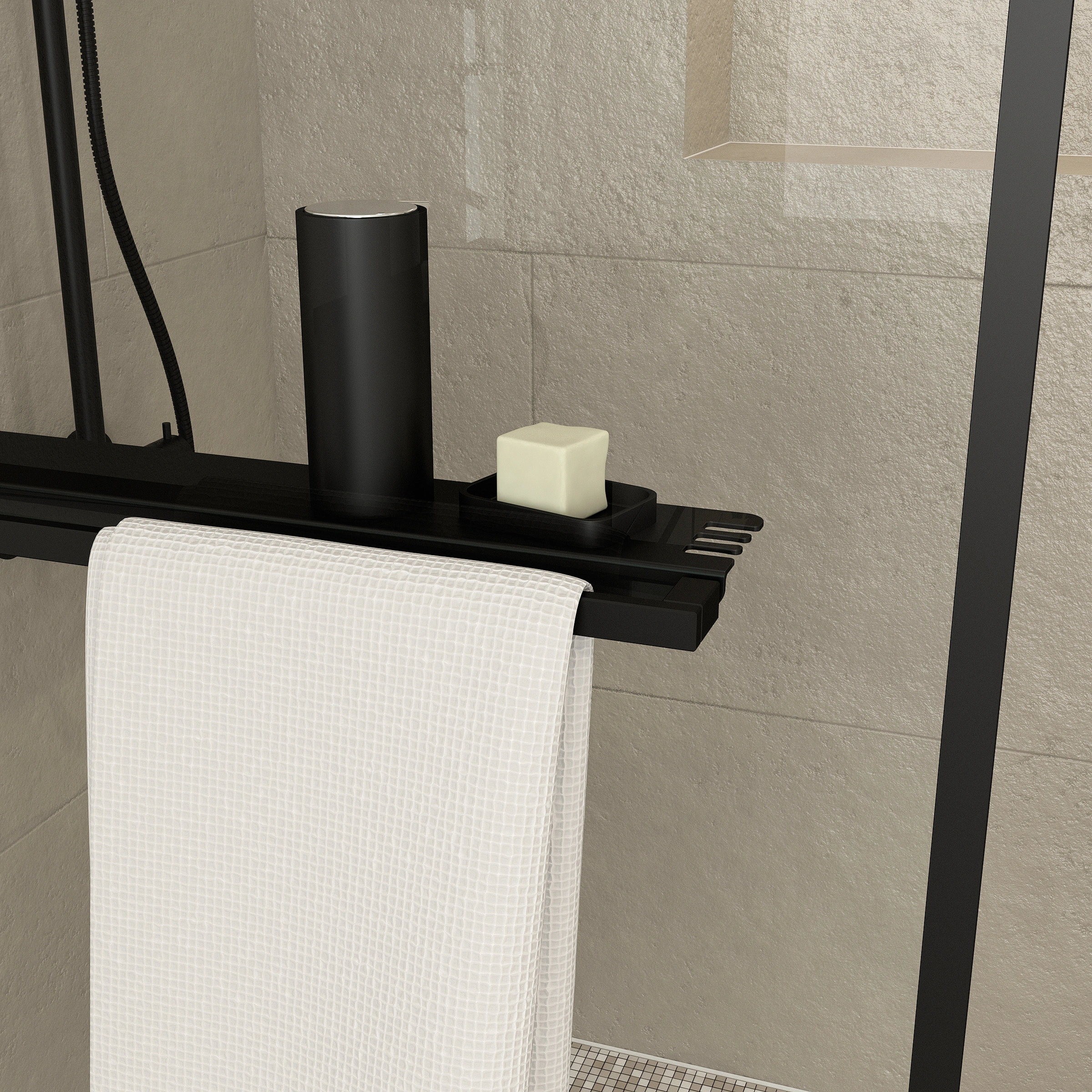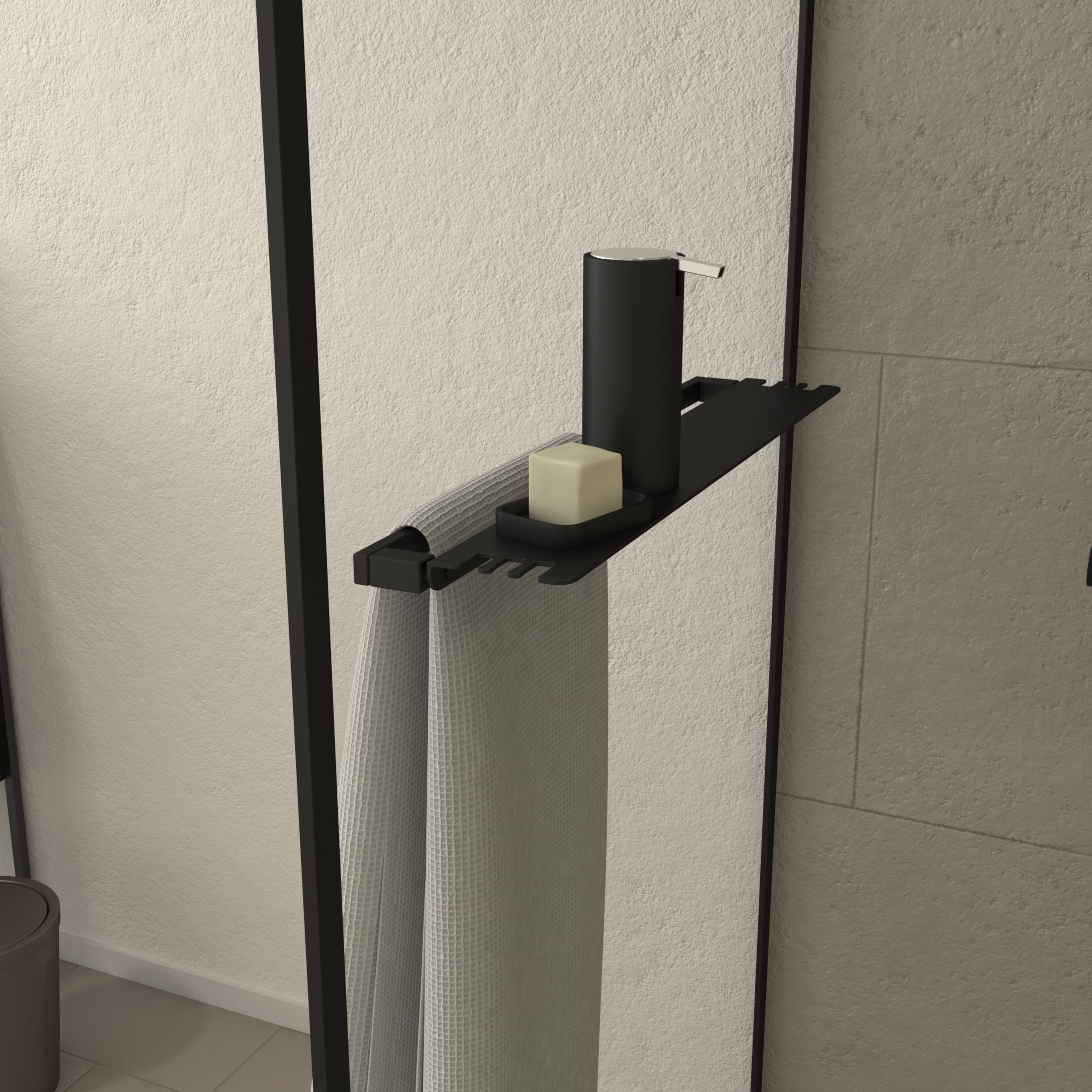 DARK CONTOURING SHELF, la paroi Noir Mat 3-en-1 : Paroi, Porte-serviette et Etagère !