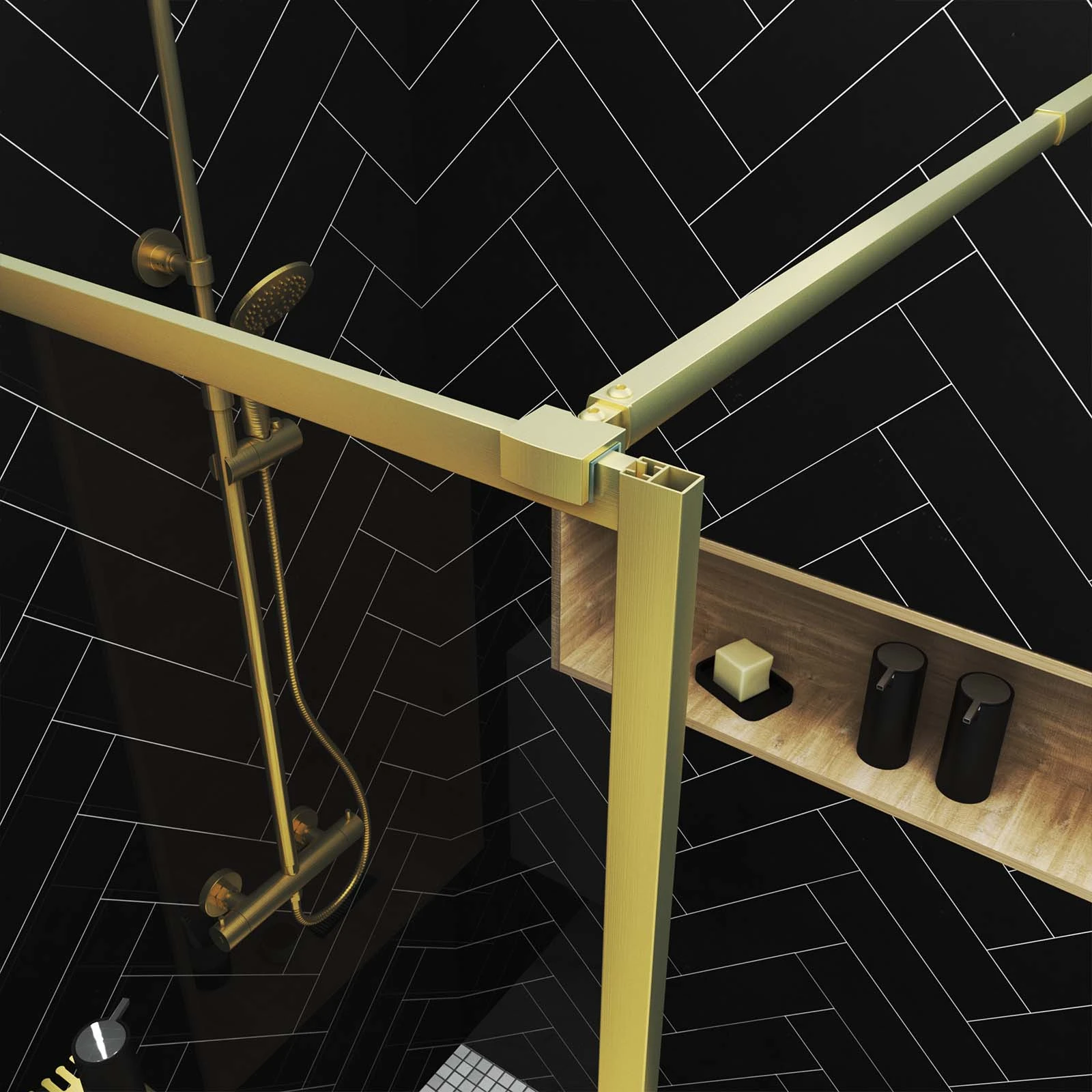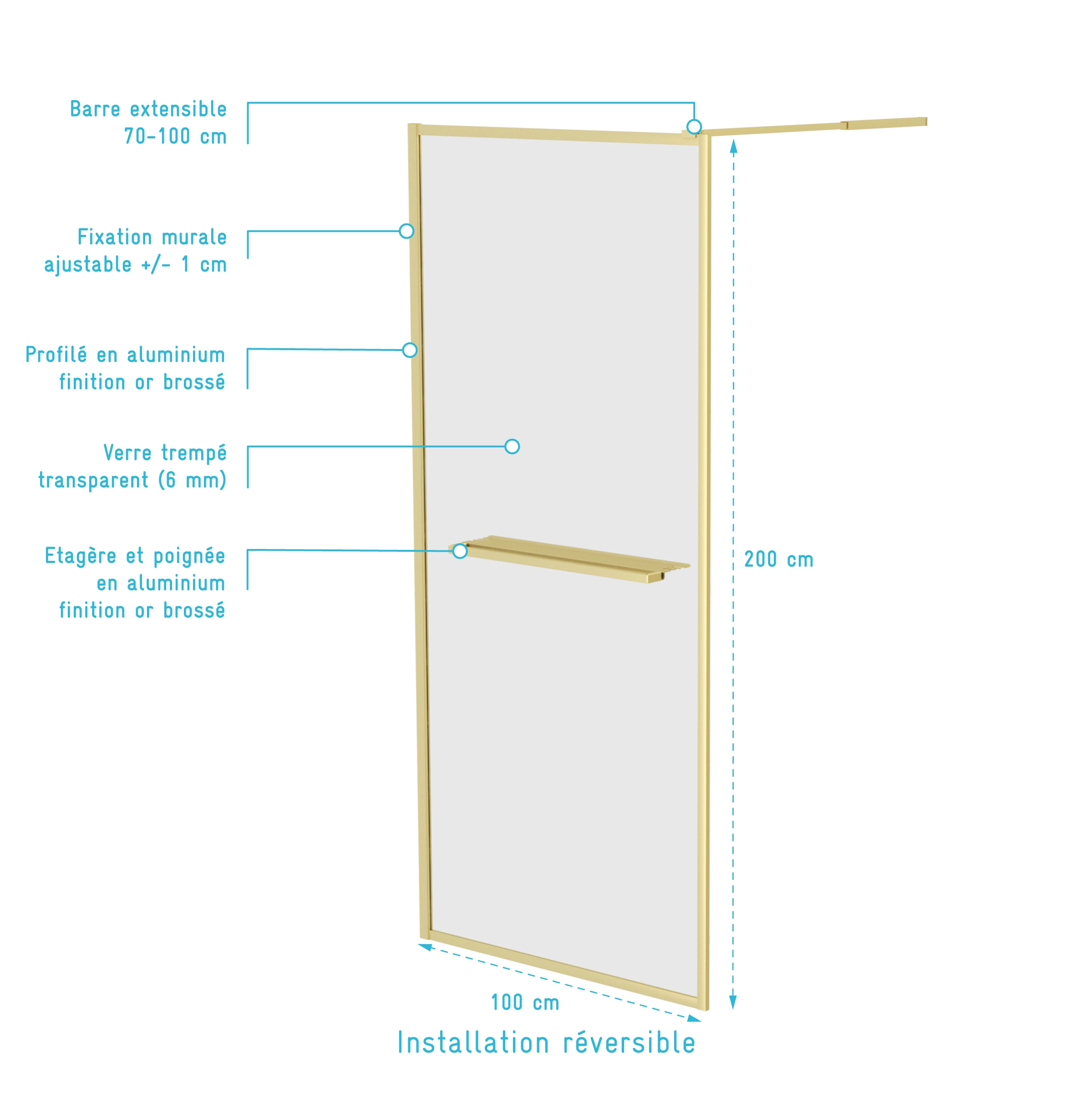 Paroi de Douche Or Doré Brossé 100x200cm – Porte-Serviette et Etagère