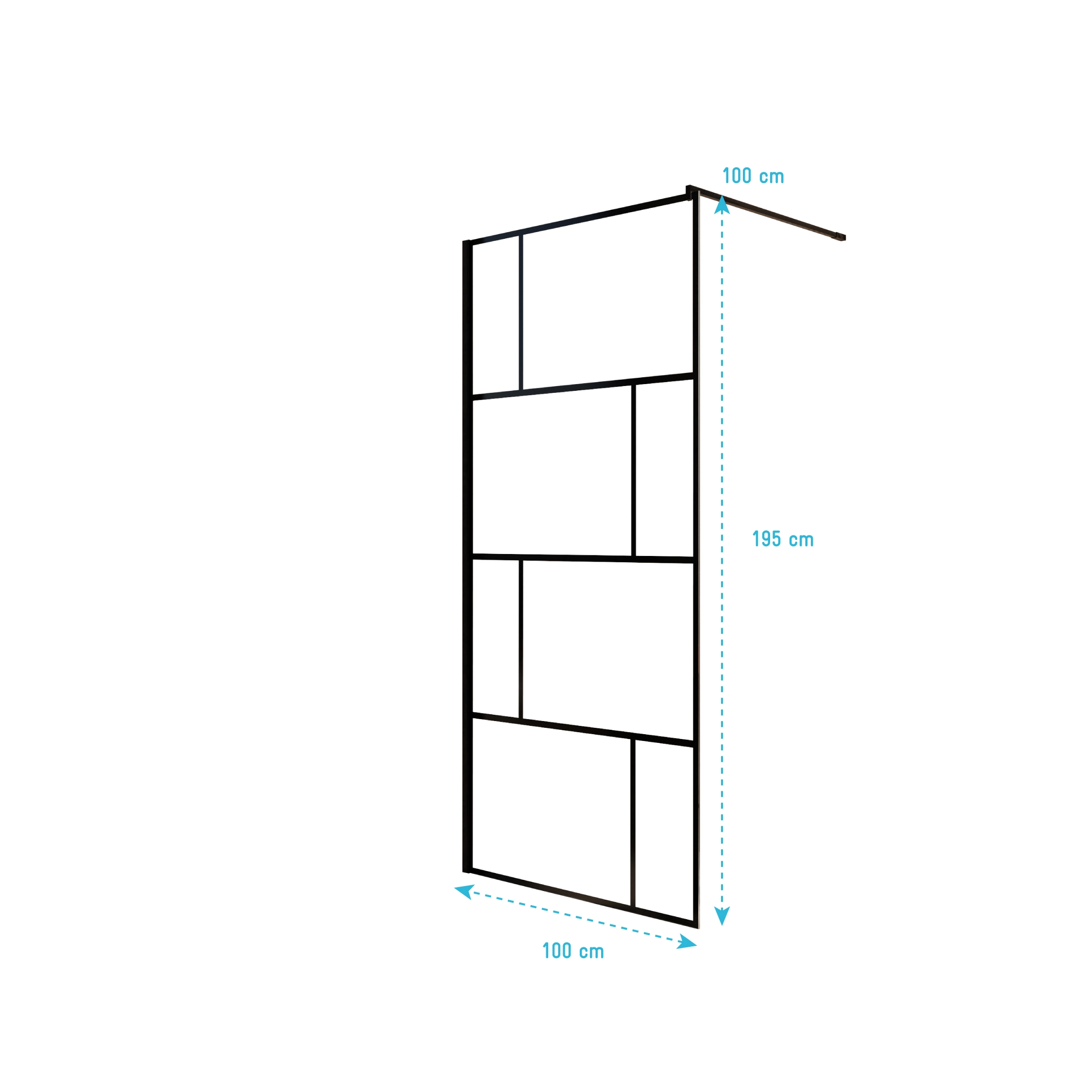 Paroi de Douche Serigraphie Brique 100x195cm - Verre Anticalcaire 8mm - Profilé Noir Mat