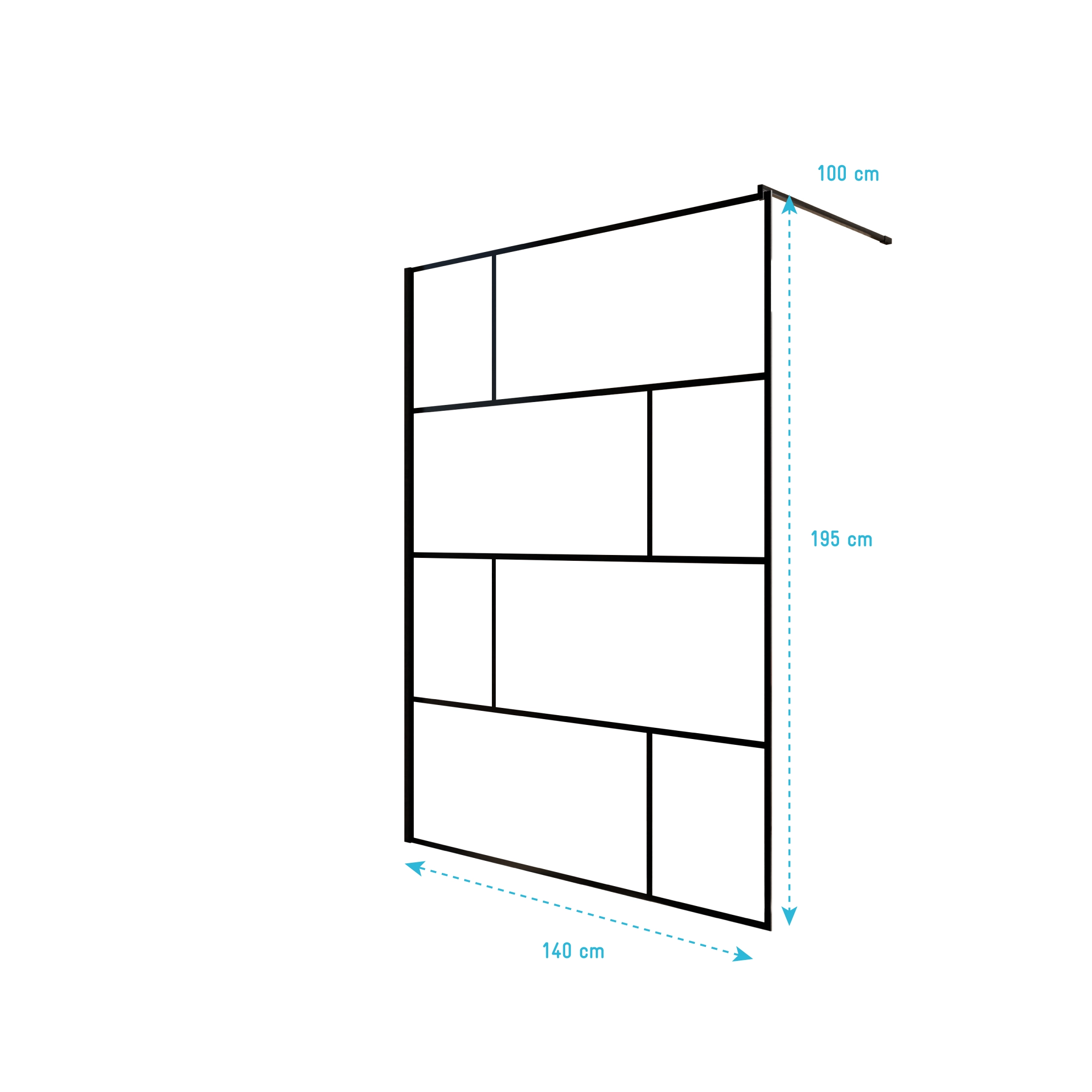 Paroi de douche 140x200 HINATA - Style Japandi Geometrique - Cadre Effet Bois - Verre 6mm