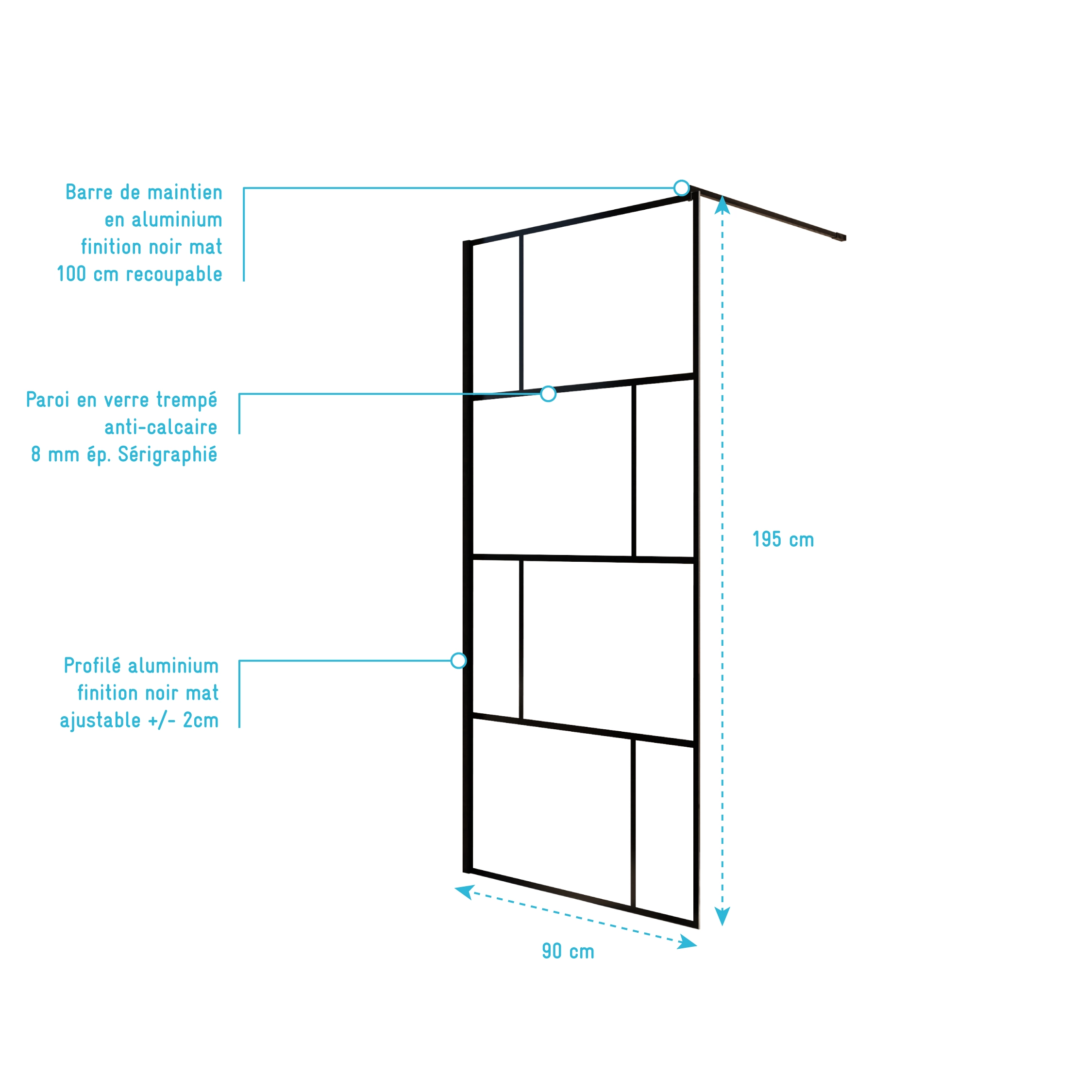 0 avis DARK BLOCKS Paroi de Douche Serigraphie Brique 90x195cm - Verre Anticalcaire 8mm - Profilé Noir Mat