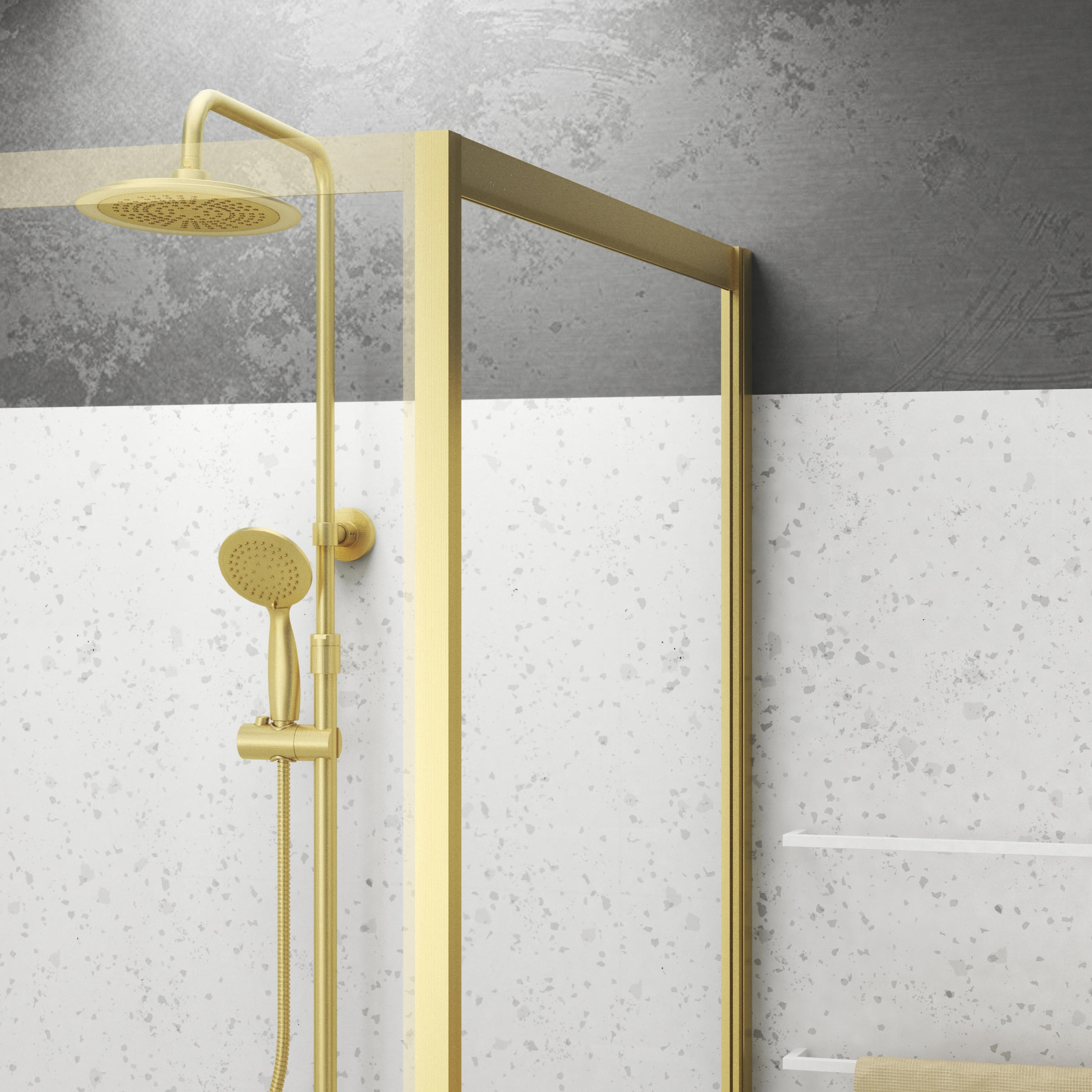 La structure en aluminium or brossé ajoutera une pointe de raffinement à votre salle de bains. A la fois pratique, robuste et esthétique, cette paroi a été conçue comme un véritable élément de décoration qui apportera la touche finale à votre intérieur.