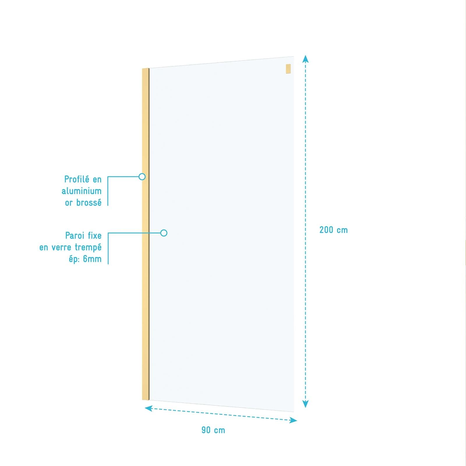 Paroi de Retour 90×200 cm – Finition Or Doré Brossé – Verre Trempé 6 mm