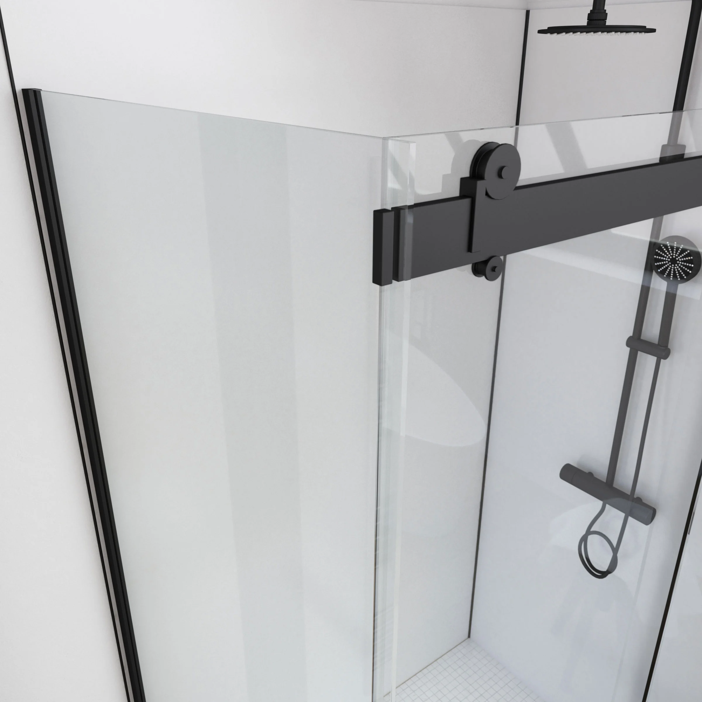 Paroi de retour pour Paroi porte de douche type industriel NOIR MAT – 90x200cm – verre trempe 8mm