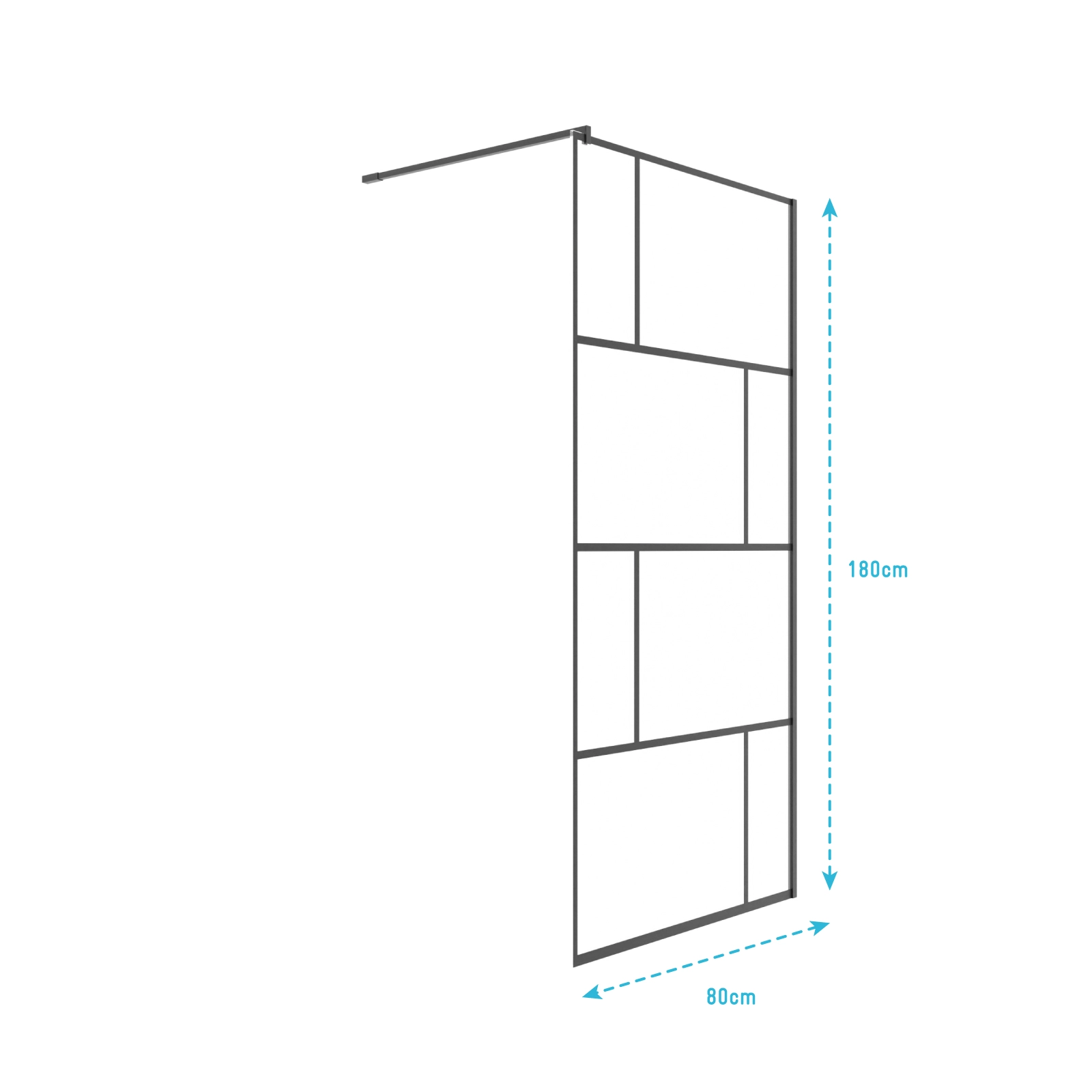 Paroi de retour Sérigraphie Briques 80×180 cm pour Porte de Douche DARK BLOCKS – Profilé Noir Mat