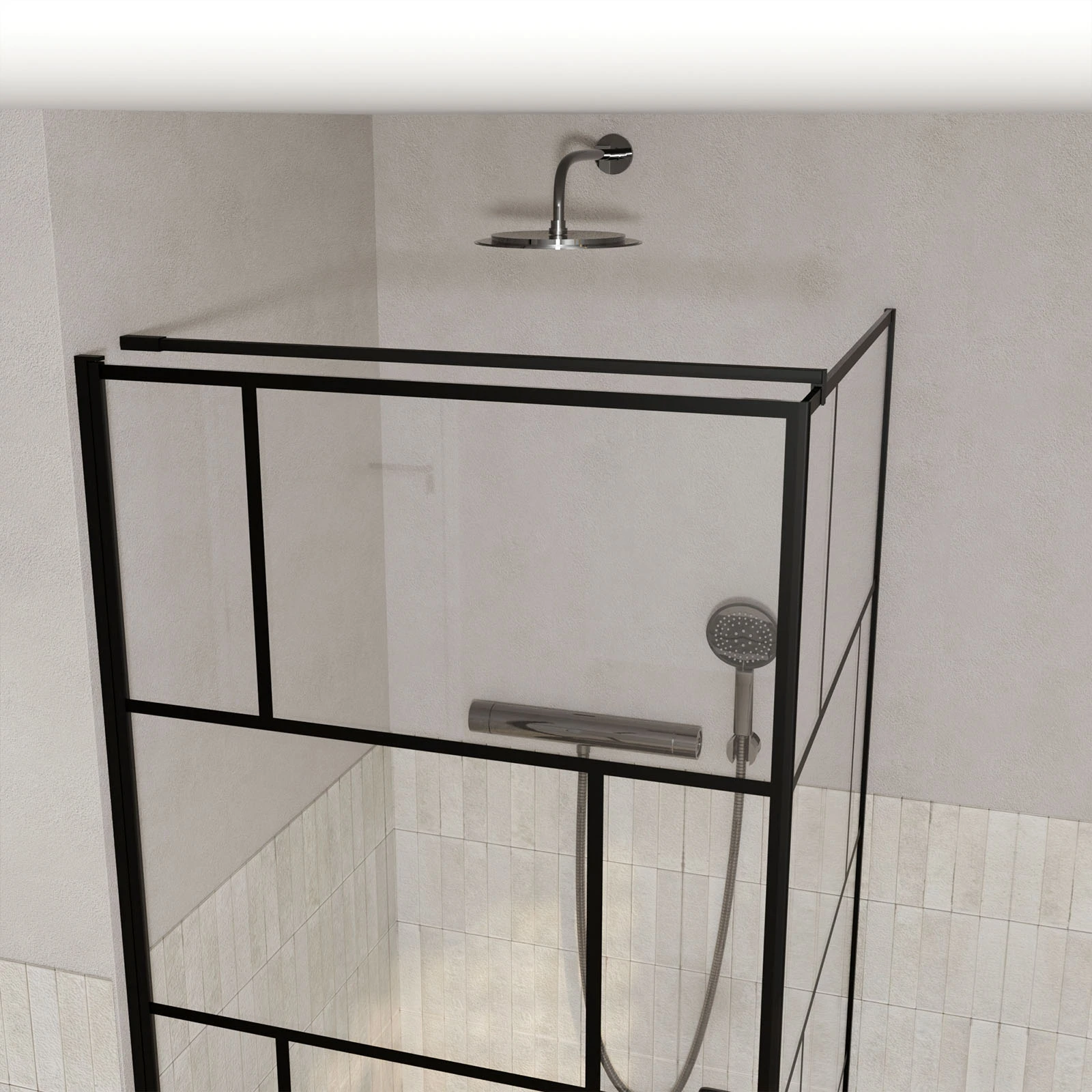 Paroi de retour 90x180 cm pour Porte de Douche - Verre Trempe 5mm - Finition Noire - DARK ELEMENTARY